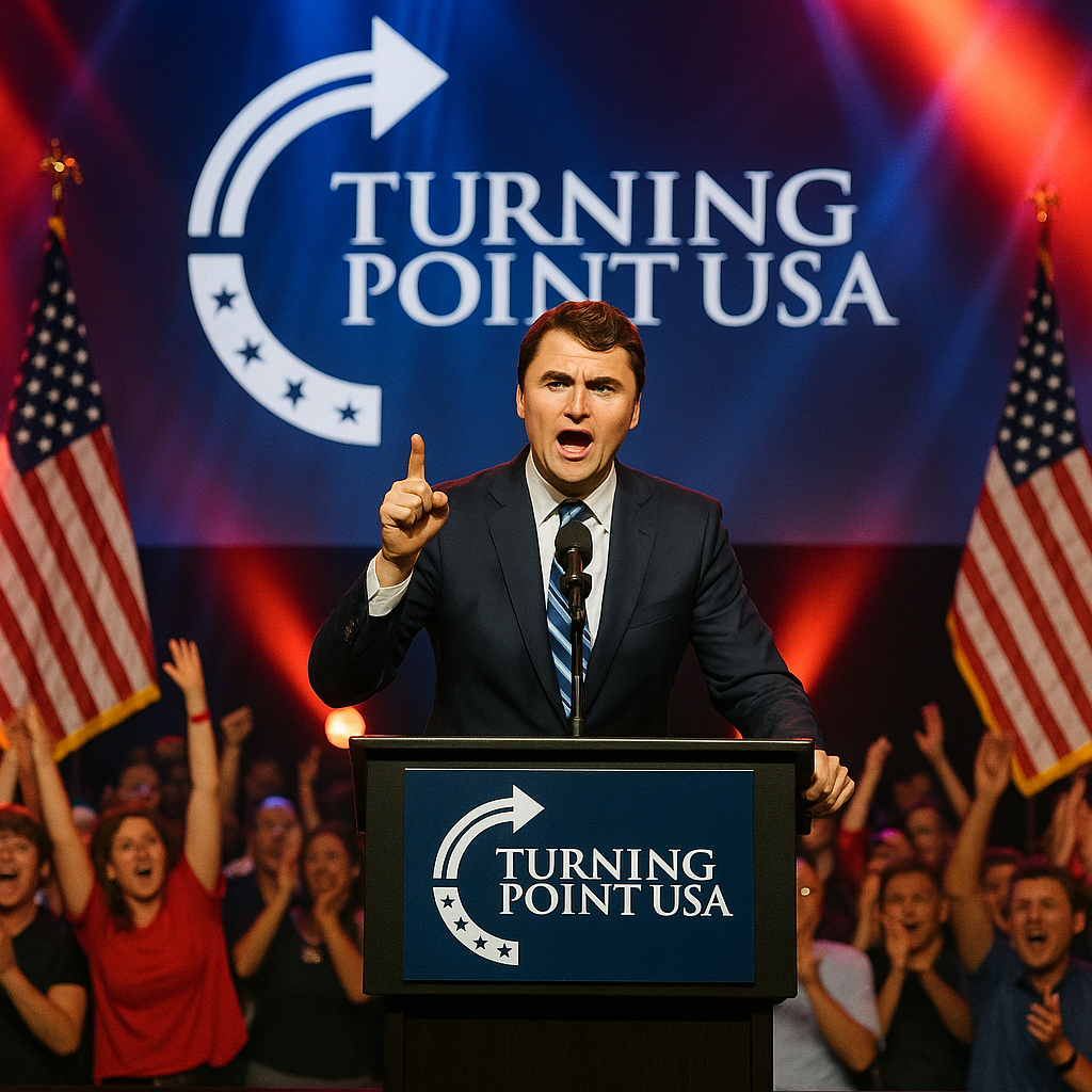Charlie Kirk at typical Turning Point USA campus event before assassination