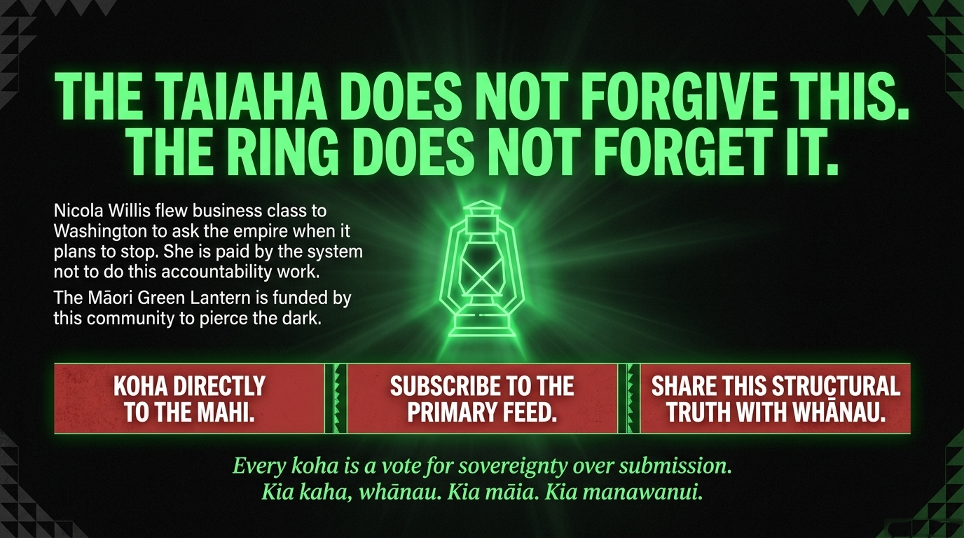 When you koha to The Māori Green Lantern, you are funding the infrastructure that Channel Infrastructure, the IMF, and Nicola Willis will never provide. You are funding the work of tracing the whakapapa of harm — back through the Marsden Point closure, through the IMF validation loop, through the corporate information asymmetry — and naming it clearly in plain te reo Māori and plain English so that whānau in Flaxmere and Flaxmill Bay and Ōpōtiki understand exactly who made this decision and why.