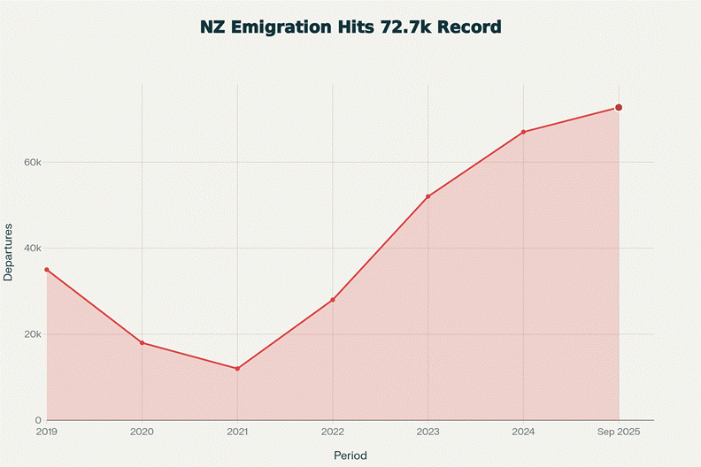 Brain drain crisis: Record 72,700 New Zealand citizens leaving the country in 2025