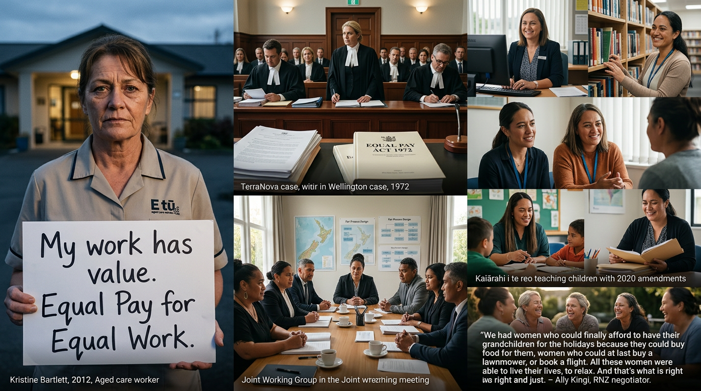 The landmark TerraNova case confirmed that the Equal Pay Act allowed workers to argue their jobs had been undervalued because they were predominantly performed by women. A Joint Working Group — convened under a National government — spent two years designing a proper process. The 2020 amendments made it law.