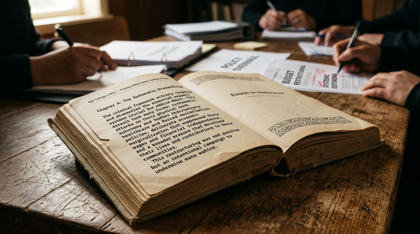 This theft does not stand alone. It is one thread in a deliberate unravelling. The Māori Green Lantern has previously documented the same coalition's attacks on the bodies, wages and lives of wāhine Māori — explore the full archive at The Māori Green Lantern, where essays trace how every system our wāhine depend upon — health, housing, education, welfare — has been defunded, restructured, and handed to the market by the same hands that gathered on that screen for 45 minutes. The connections are not coincidental. They are structural. They are colonial. And this reo will not stop naming them.