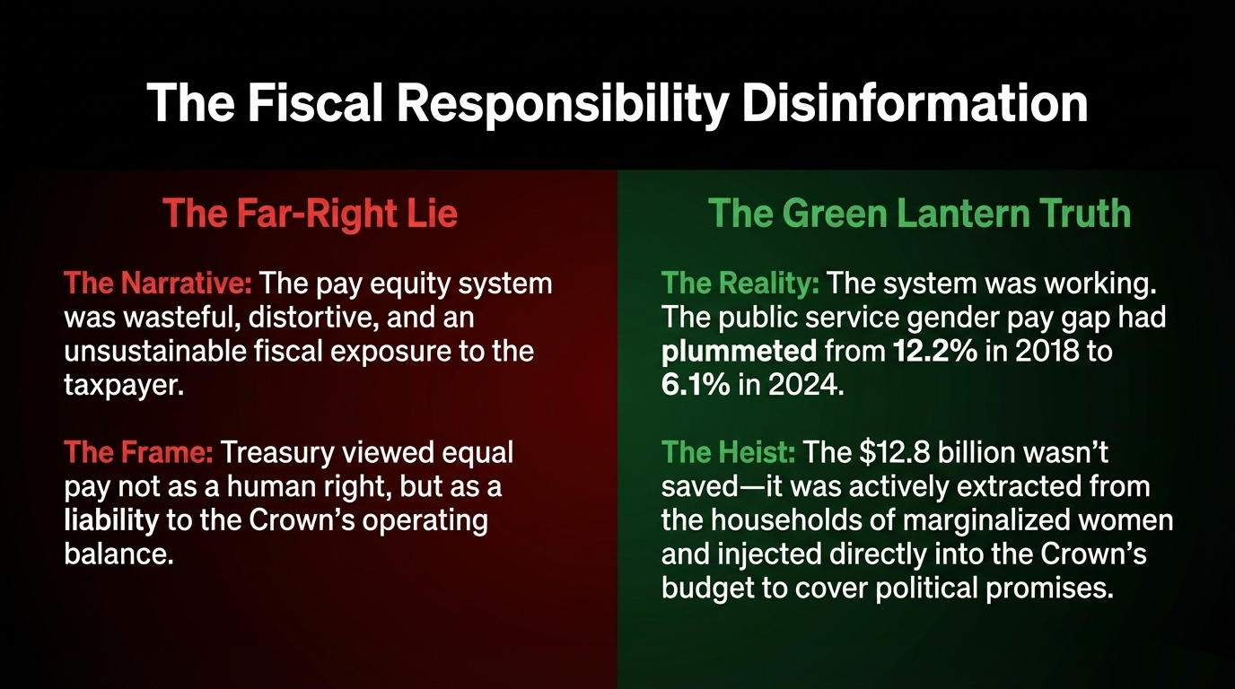 - The $12.8 billion is a direct Budget injection — Treasury estimated that $3.193 billion from public-sector pay equity contingencies alone could be returned to Budget allowances, with up to $12.8 billion freed across the public and funded sectors. This was a Budget heist dressed as law reform.