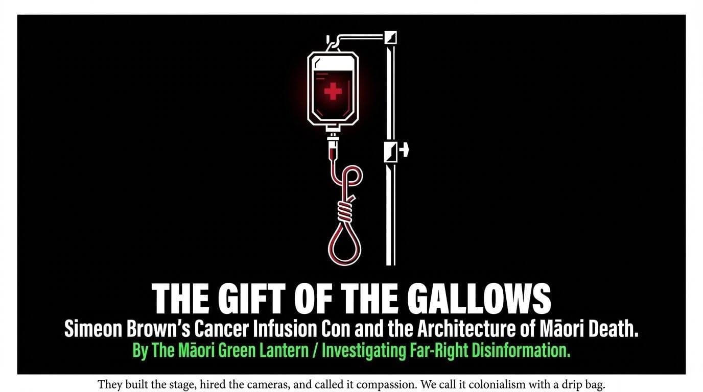 "THE GIFT OF THE GALLOWS: Simeon Brown's Cancer Infusion Con and the Architecture of Māori Death" - 13 April 2026