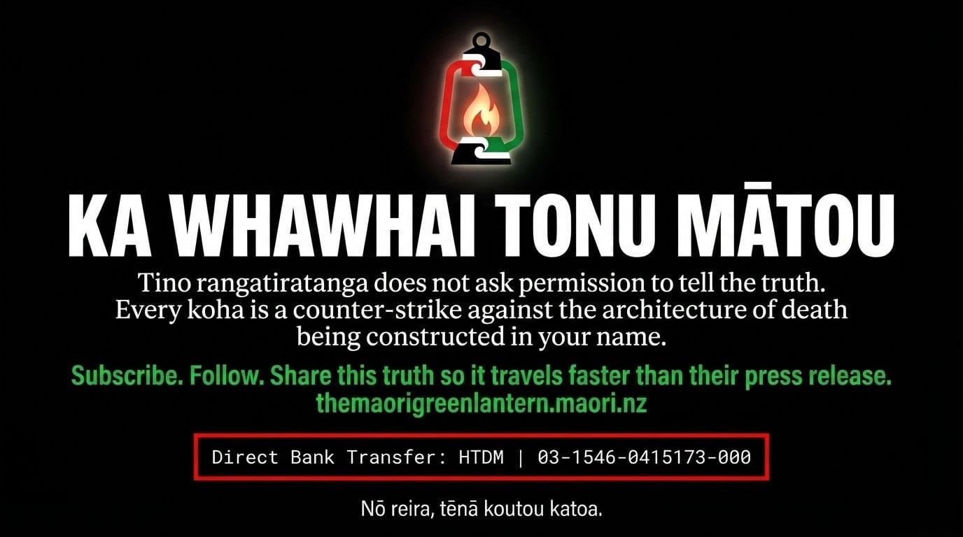 If you cannot koha — no worries, no shame. Subscribe, follow, and share this essay. That is koha in itself. Follow and read at themaorigreenlantern.maori.nz — share so this truth travels faster than the press release that tried to bury it.