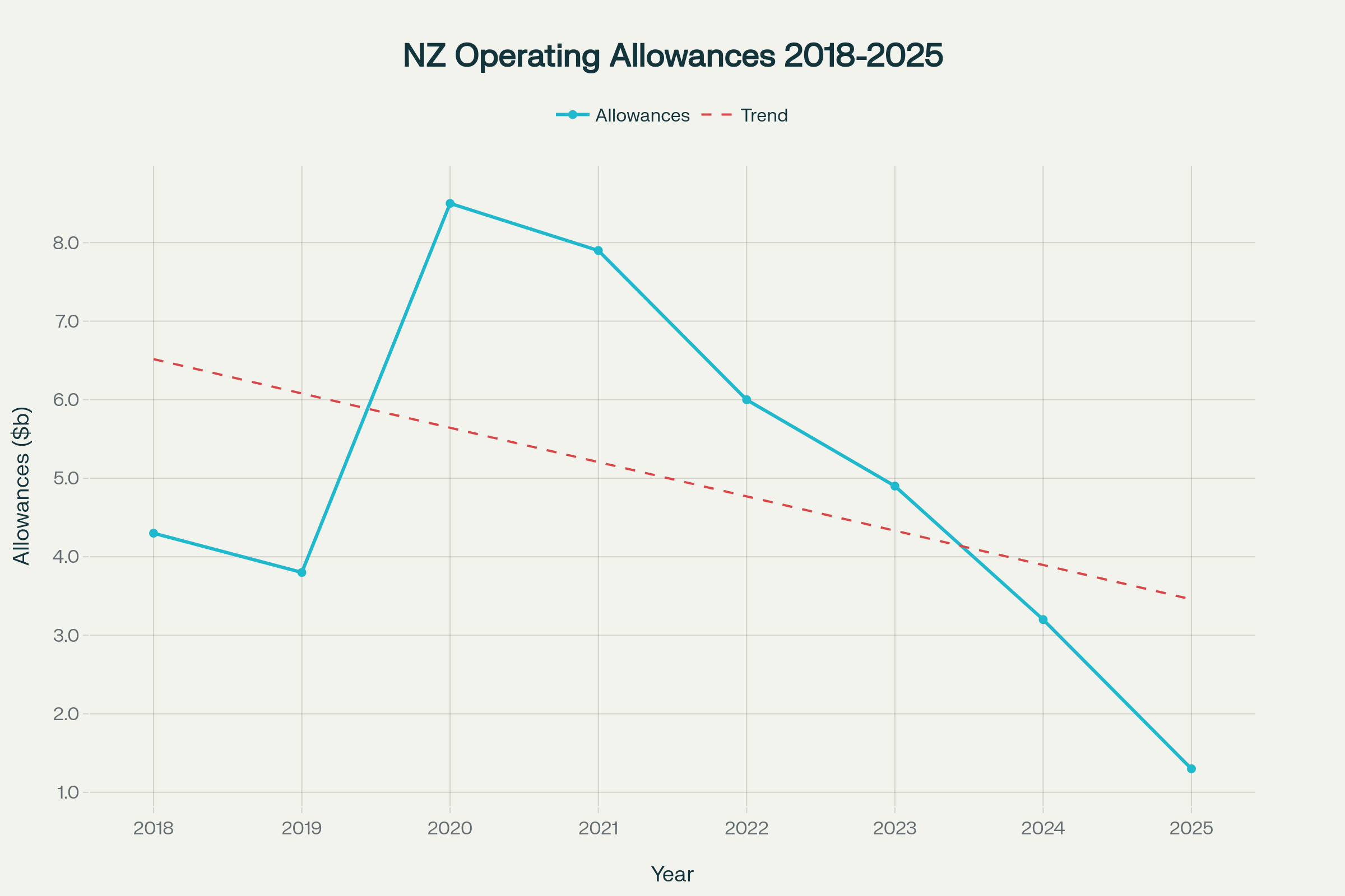 Operating allowances showing the dramatic decline to decade-low levels under the current coalition government