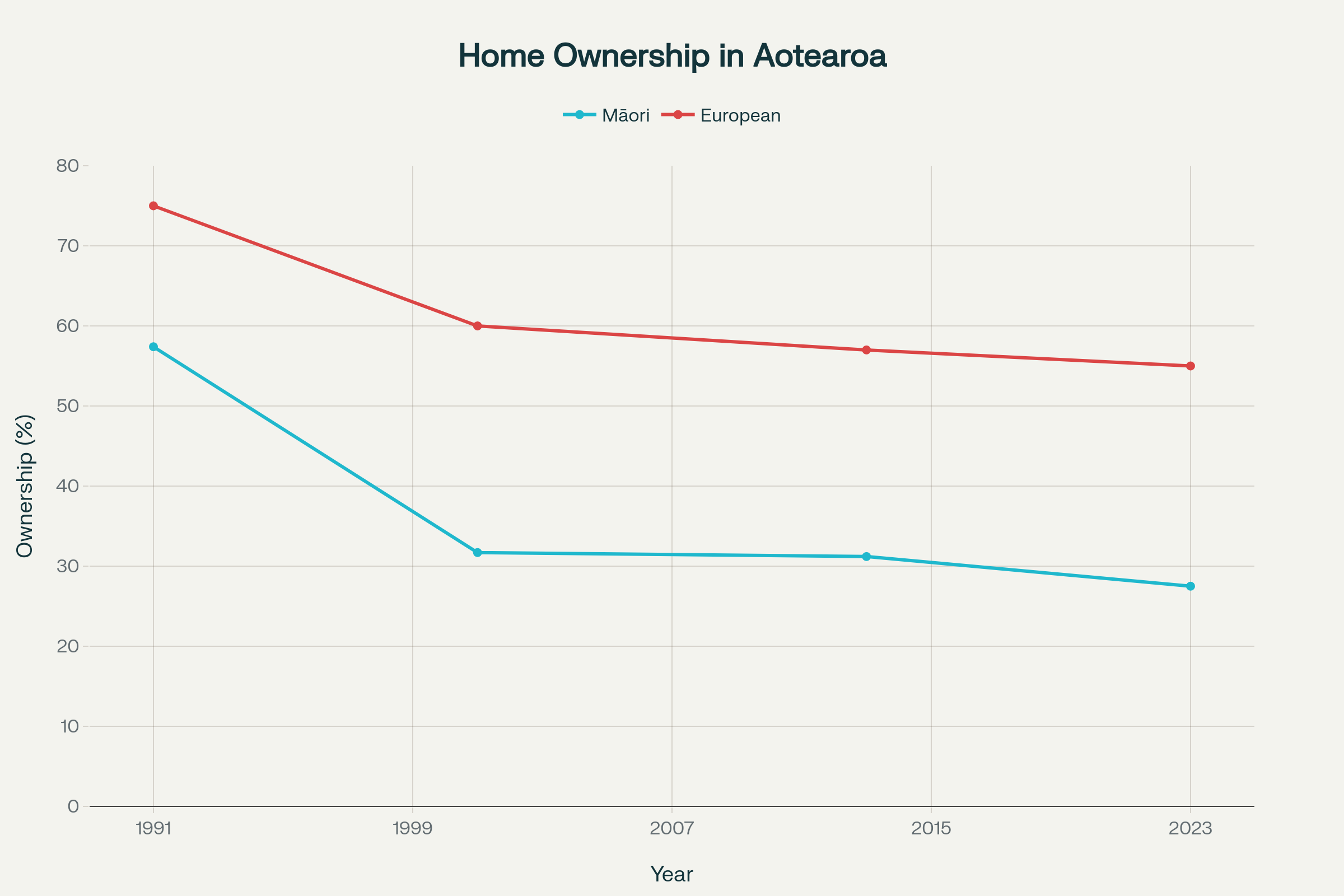 Chart: The Great Dispossession (Māori Home Ownership 1991–2023)