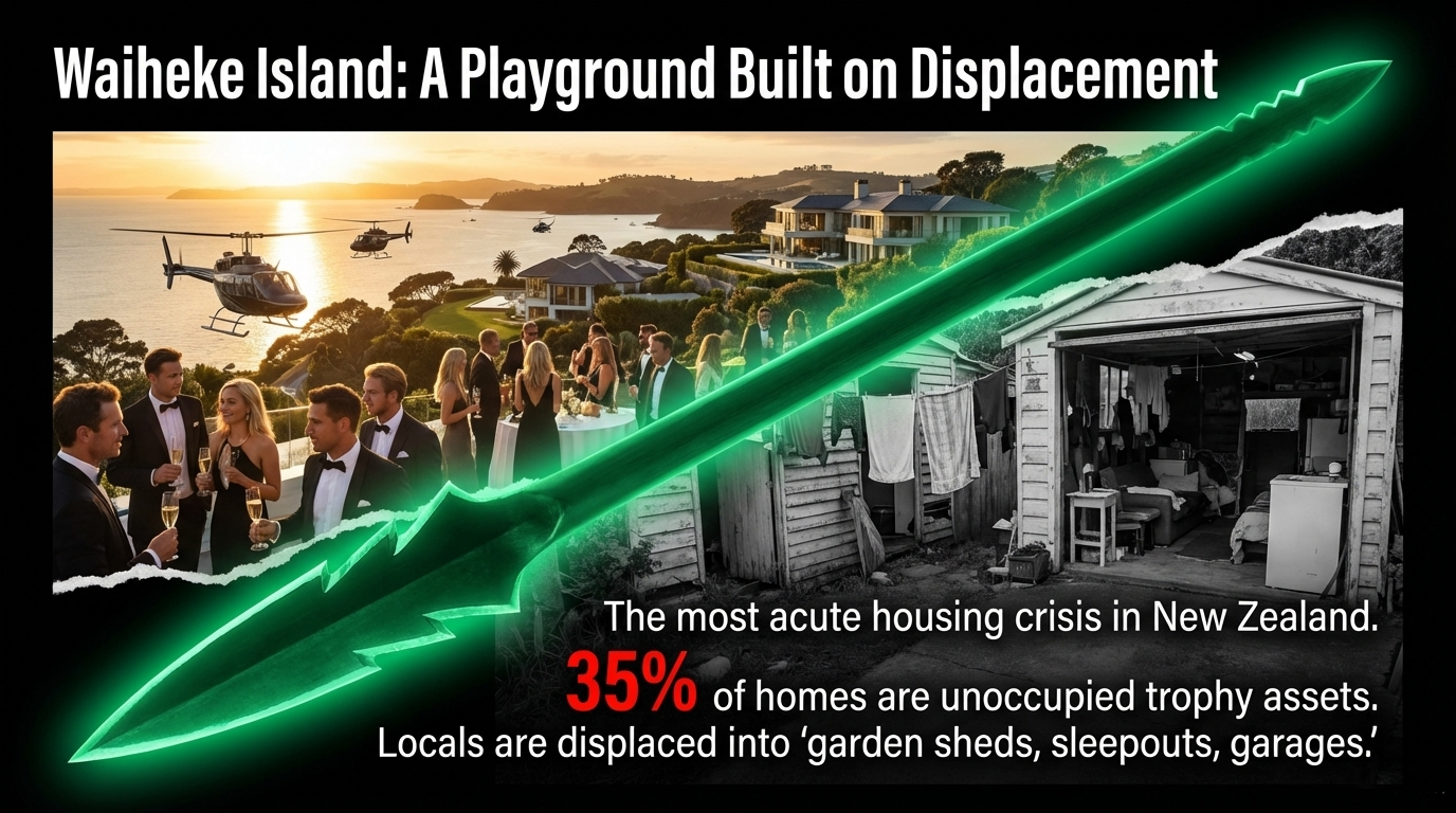 This is the reality that exists alongside billionaires partying on Waiheke Island with private jets, superyachts, and helicopters. The Herald celebrates the latter and ignores the former.
