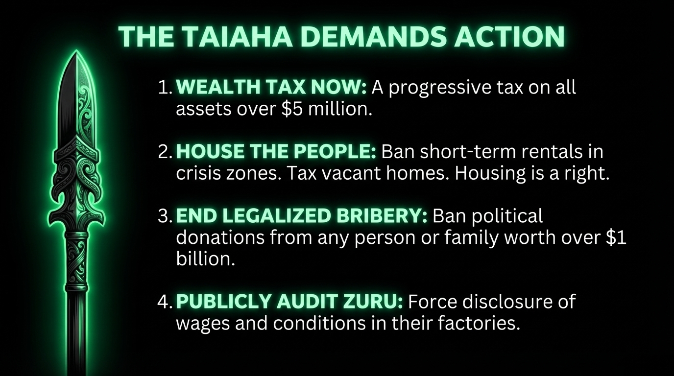 The Herald will never write these words. It exists to protect the system, not interrogate it. But the taiaha knows: power respects only organized force. When māra kai (community gardens) feed more whānau than the state does, when iwi-led housing collectives outpace government builds, when workers unionize across Zuru’s factories and Cloudflare’s data centers—that’s when the billionaires will panic.