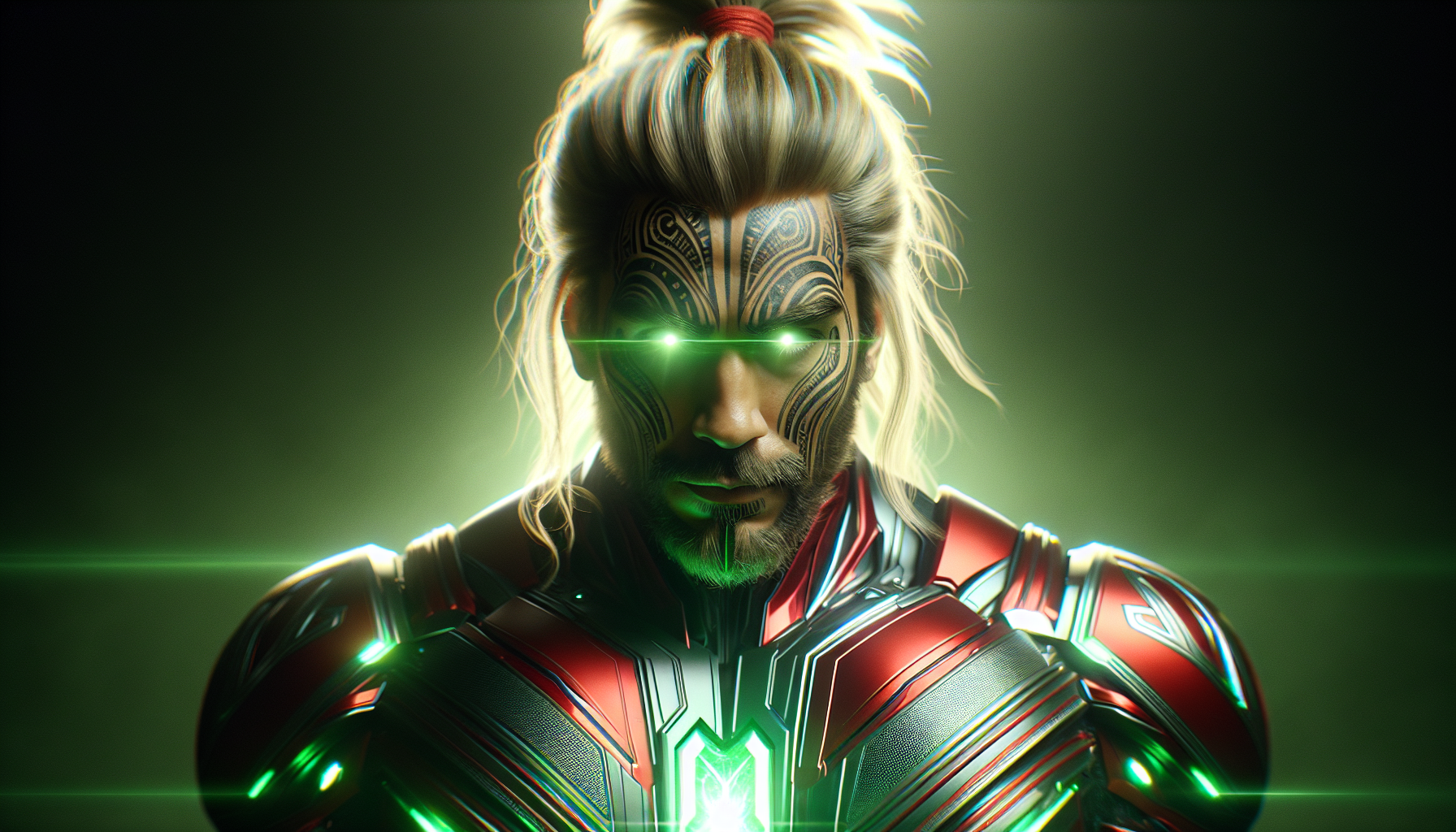 Ko Ivor Jones Te Māori Green Lantern — Tohunga mau rākau wairua, Kaitiaki of Māori, wielding the taiaha empowered by the Ring to expose misinformation, white supremacy, racism, and neoliberalism in Aotearoa.