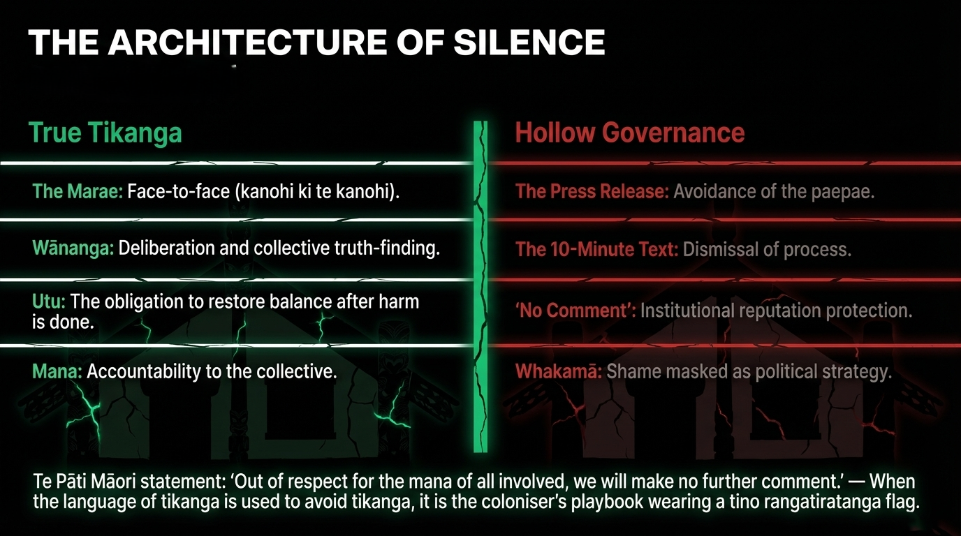 This essay names what that silence is, who it protects, who it harms, and what genuine tikanga leadership demands in response.