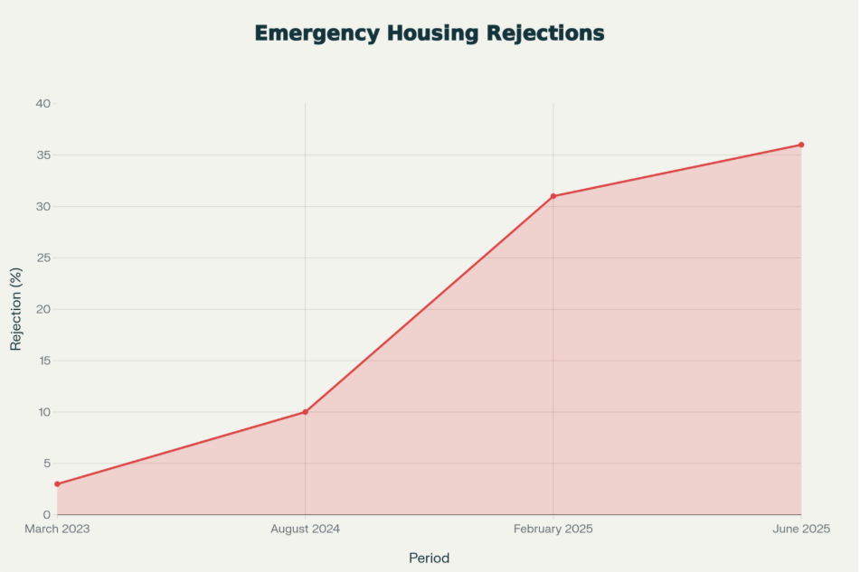 Emergency housing application rejection rate rises from 3% to 36%
