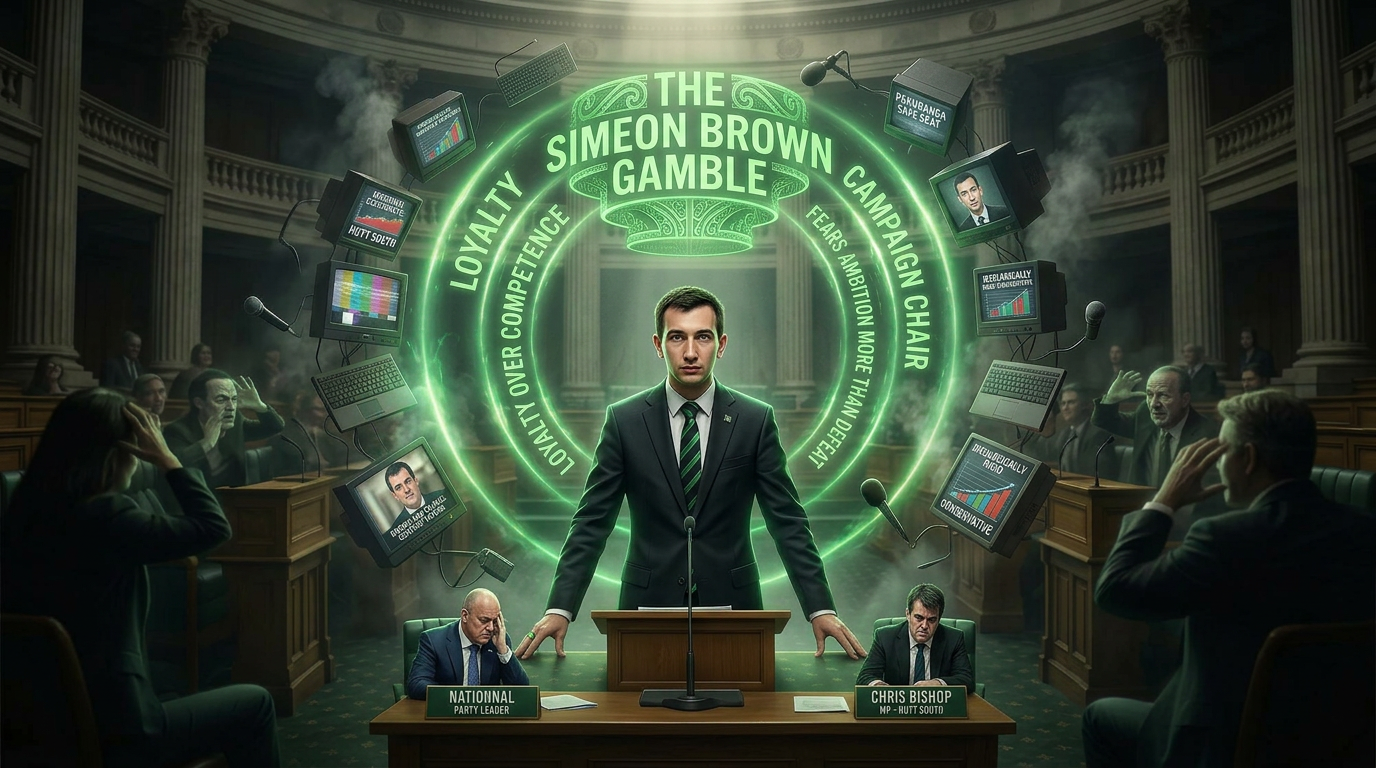 The choice to hand the campaign chair to Simeon Brown — a conservative Auckland MP from the safe seat of Pakuranga — is the decision of a leader who fears ambition more than he fears defeat.