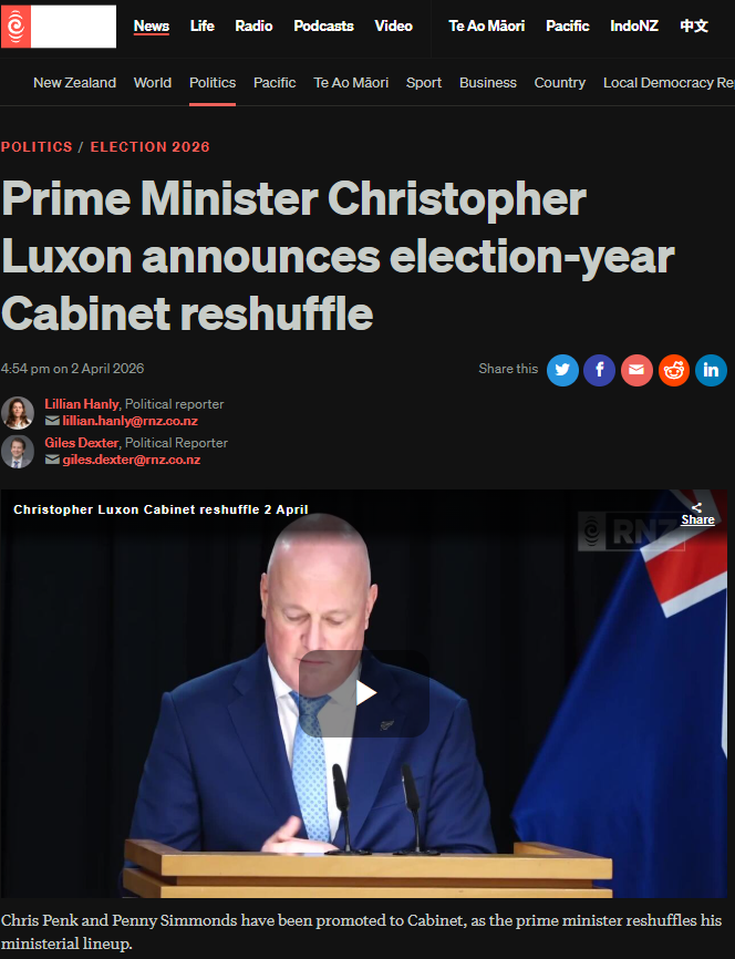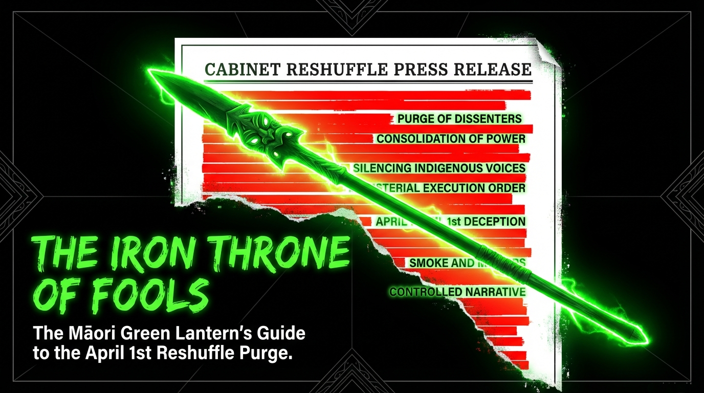 In te ao Māori, we understand pūrākau — the power of story to reveal what the powerful wish to conceal. Every reshuffle has a hidden story. Every demotion has a whakapapa. Every promotion carries the fingerprints of fear. On April 1, 2026 — April Fools' Day — Christopher Luxon gifted us the most transparent act of political self-preservation this country has witnessed since the Rogernomics betrayal ripped the heart out of our communities in the 1980s.