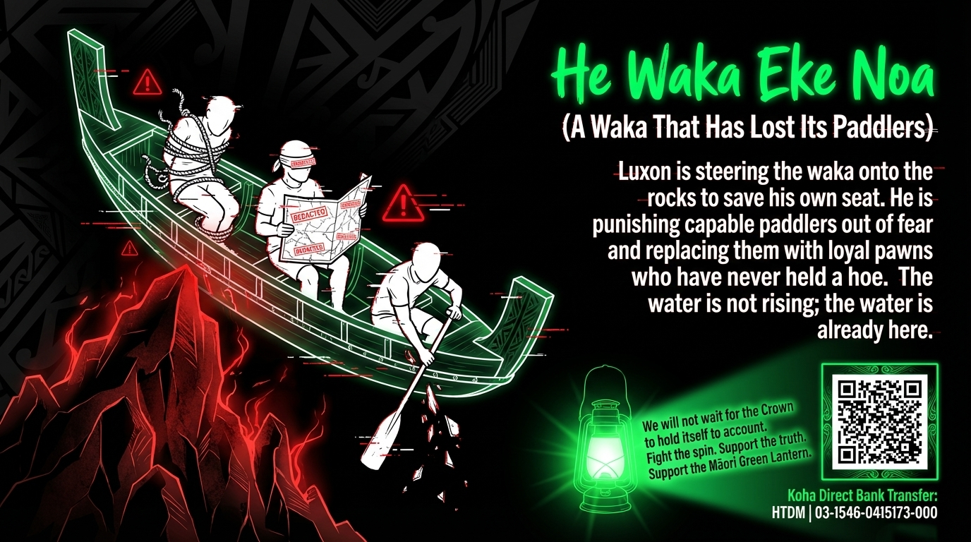 He waka eke noa. We are all in the same canoe. But what happens when the captain is steering the waka onto the rocks to save his own seat — while throwing the most capable paddlers overboard and replacing them with passengers who have never held a hoe?