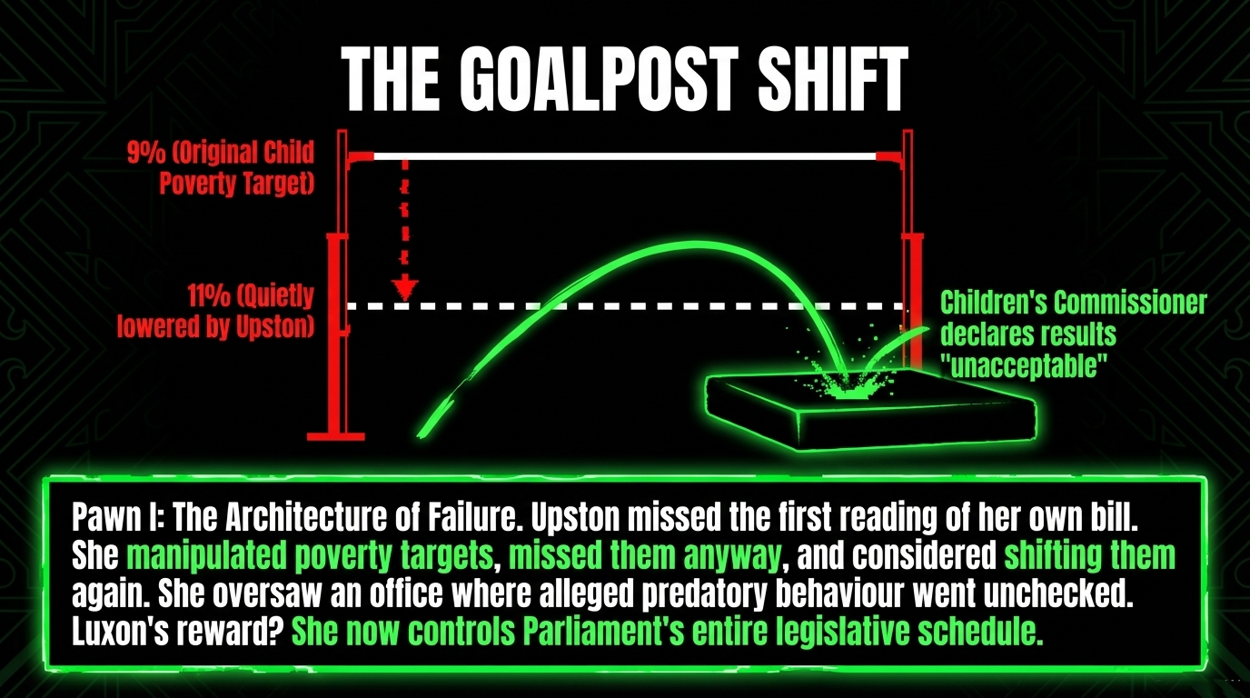 Let us be precise about what Upston did to child poverty targets — because this is not administrative error. This is deliberate, documented cruelty.