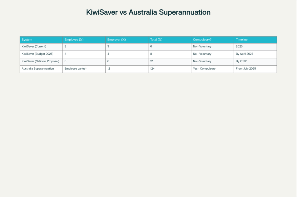 Comparison of KiwiSaver and Australian Superannuation Contribution Rates