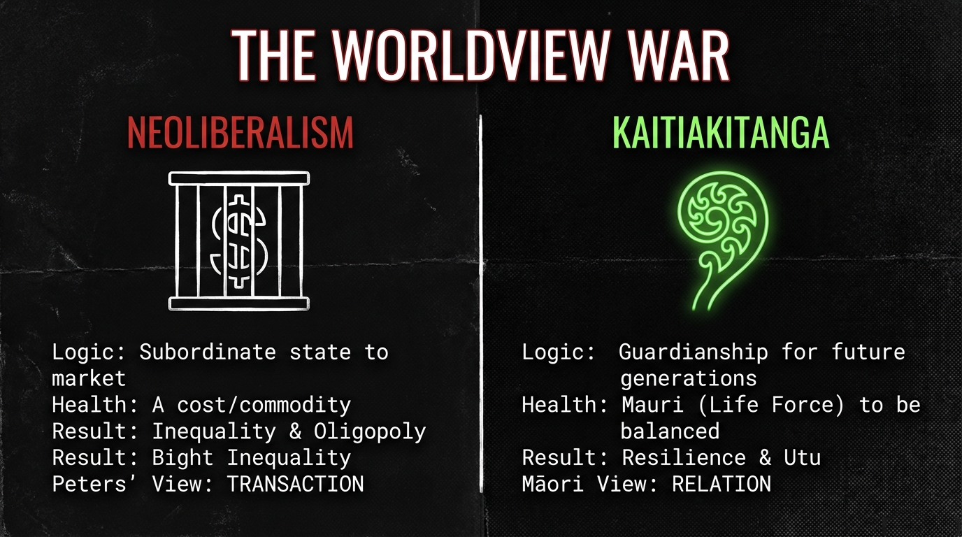 This is extraction politics—extracting national dignity to fuel personal power. It’s the same logic that left Te Korowai o Wainuiārua “virtually landless” while settlers prospered. Someone always pays. Peters ensures it’s not him.
