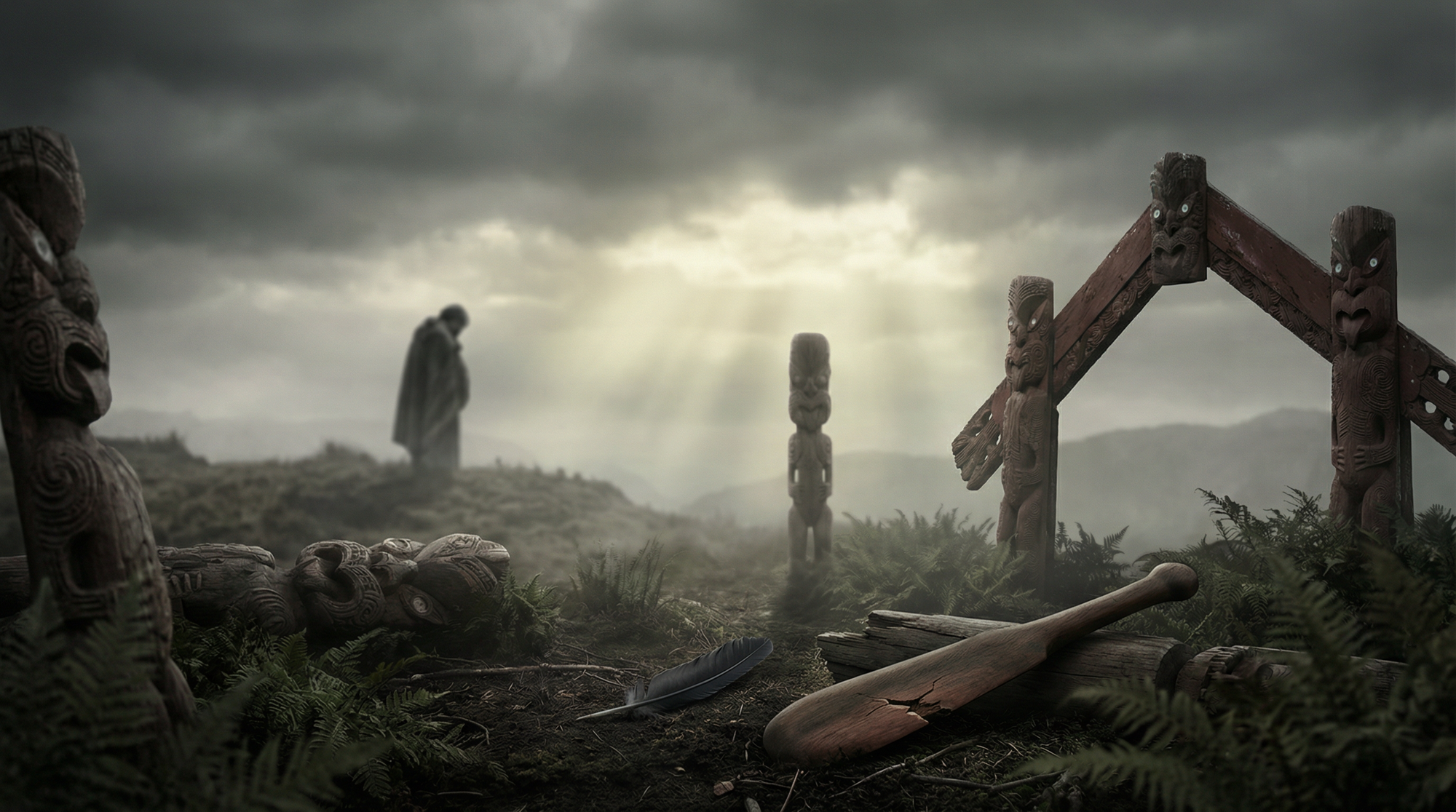 Kua hinga te tōtara i Te Waonui-a-Tāne—but this tōtara fell not in battle, but on bended knee