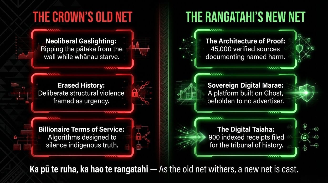 It is the receipts repository that Cabinet ministers pray will never be indexed, because once the money flows are mapped, once the policy networks are traced, once the whakapapa of harm is laid out from the boardroom to the papakainga, the political class cannot simply pivot to the next talking point.