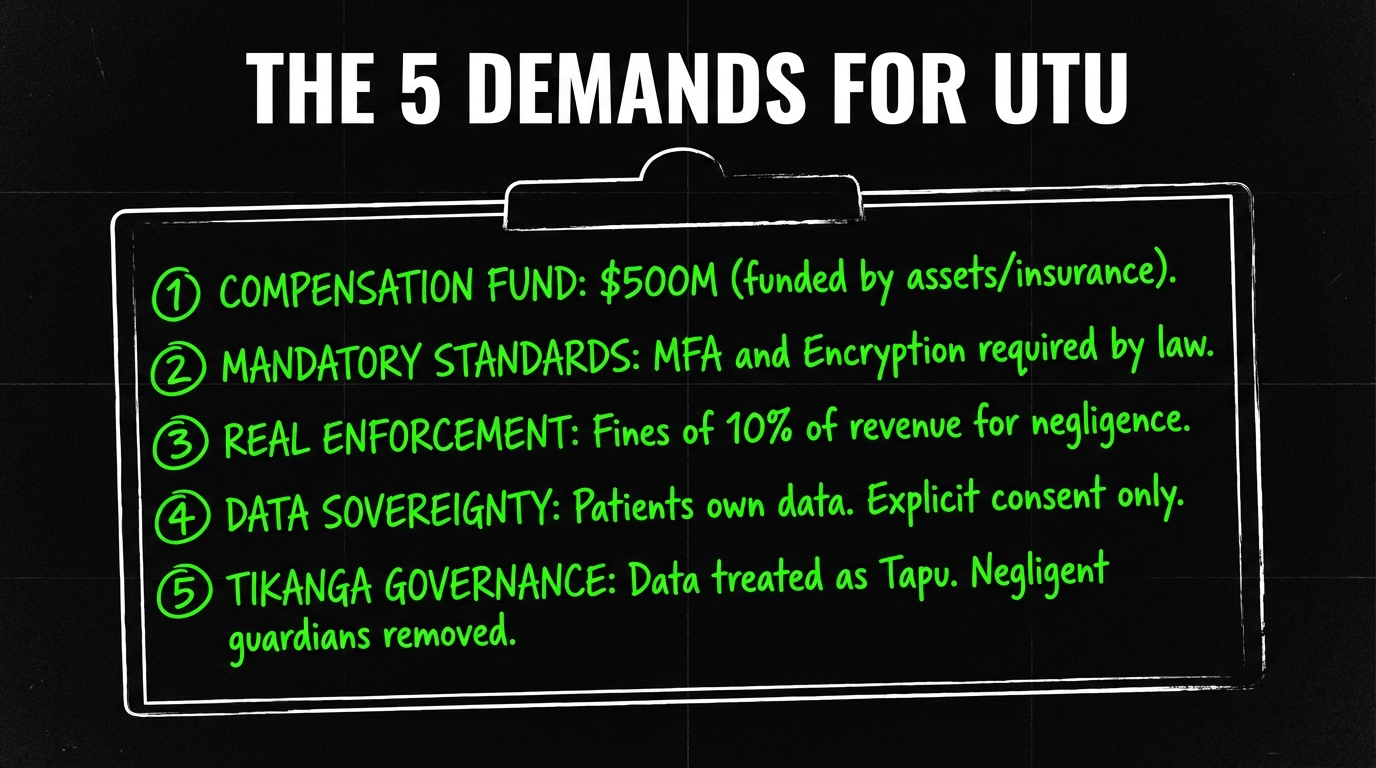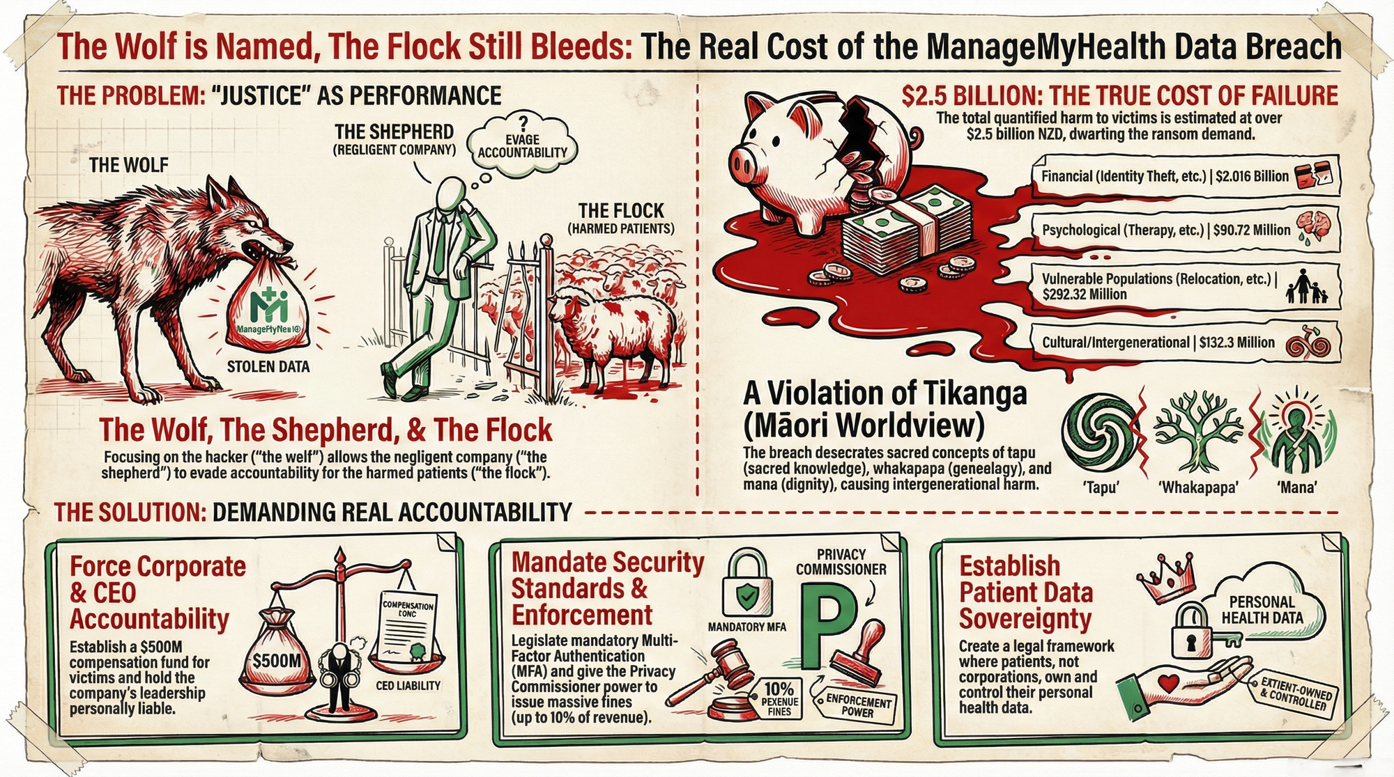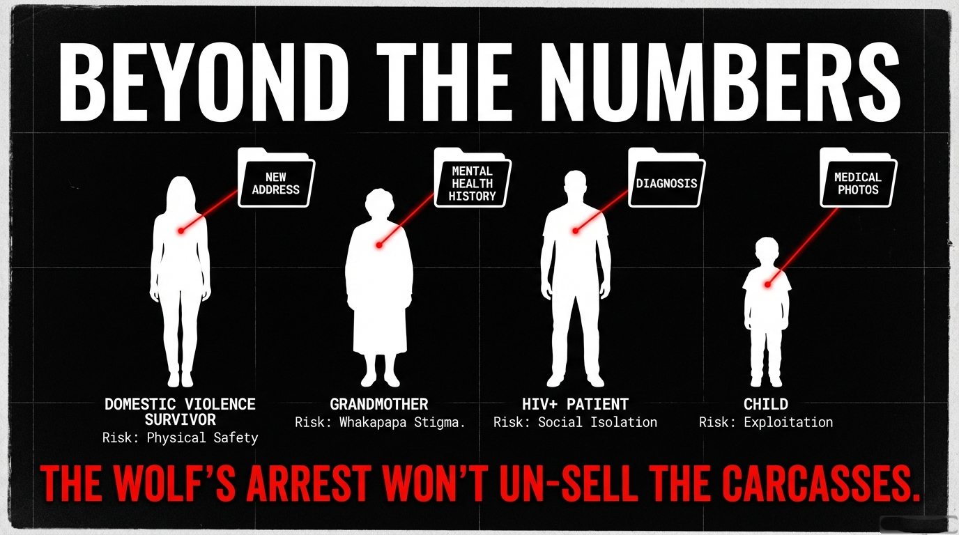 When 126,000 people’s intimate health secrets—their whakapapa of illness, their whanaungatanga with healers, their tapu knowledge—are scattered like stolen kūmara across criminal marketplaces, the harm is intergenerational.