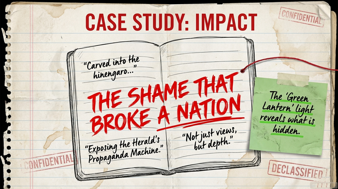—”The Regulatory Standards Bill: A Corporate Coup Against Te Tiriti o Waitangi”, “Breaking Down the Machinery of Colonial Manipulation”, “When the State Deploys Warriors Against Whānau”—were already fully formed accountability investigations.
