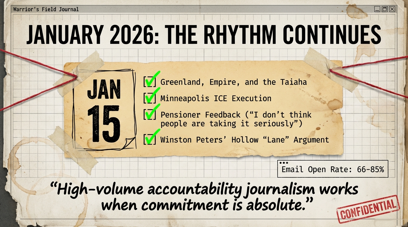 By the end of December 2025, the picture was clear: I had proven that daily, specific, evidence-heavy Māori accountability journalism is not only possible, but sustainable, and that there is an audience who will show up day after day for it.