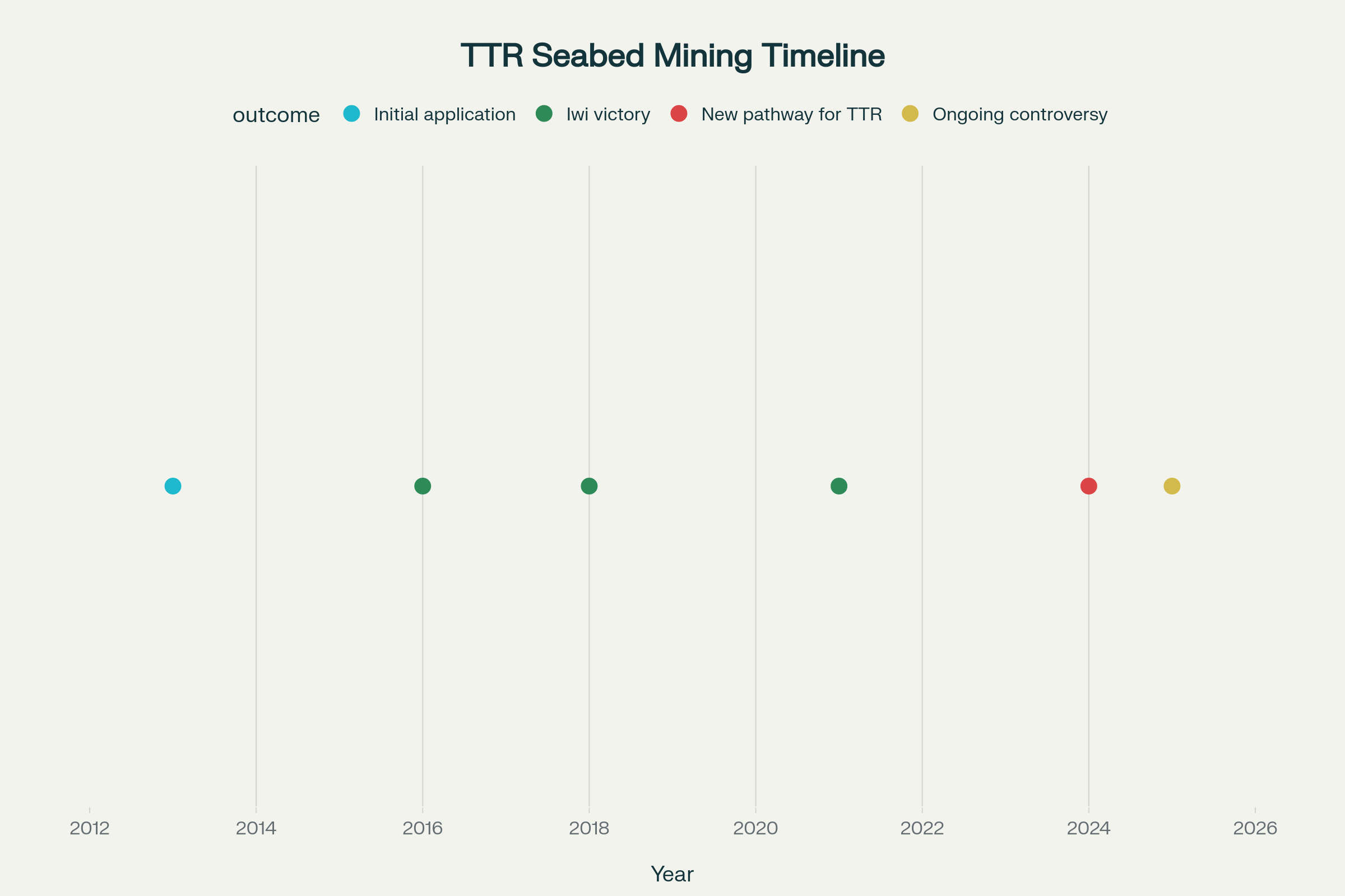 The timeline reveals a pattern of corporate persistence in the face of democratic and legal rejection. Despite losing three consecutive court cases between 2016 and 2021, Trans-Tasman Resources has used the government’s Fast-Track legislation to circumvent normal environmental protections and community consultation processes.