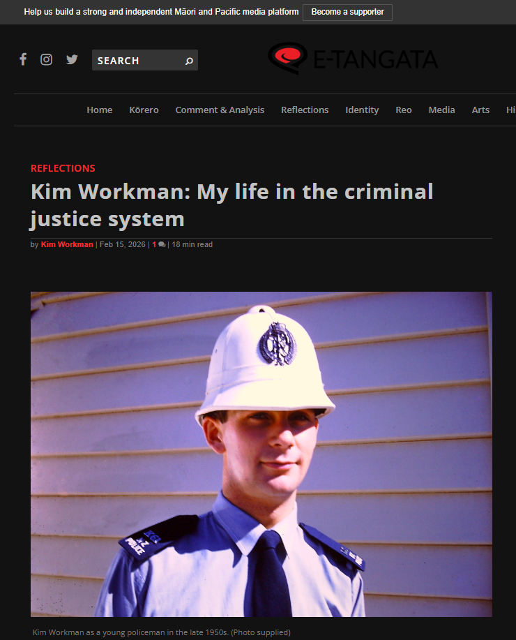 This is not a metaphor. This is the machine Tā Kim Workman spent sixty-seven years trying to dismantle — from the inside of the police, the prison service, the faith-based units, the courtrooms, and the commissions. And his testimony in E-Tangata is the blueprint of that machine, drawn by a man who worked its levers and saw the blood on the gears.