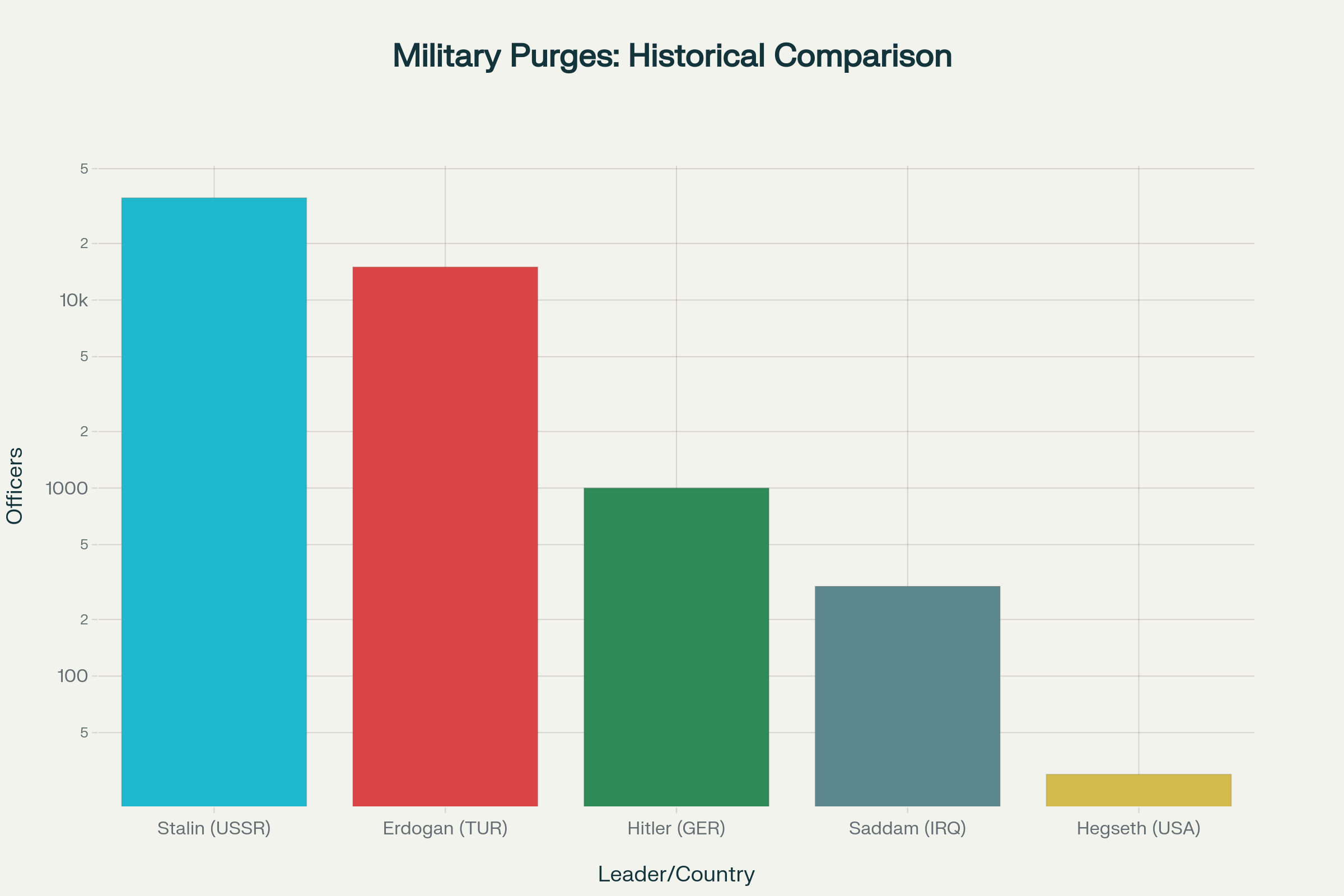 Historical comparison of military purges showing scale and context of Hegseth’s ongoing Pentagon purge