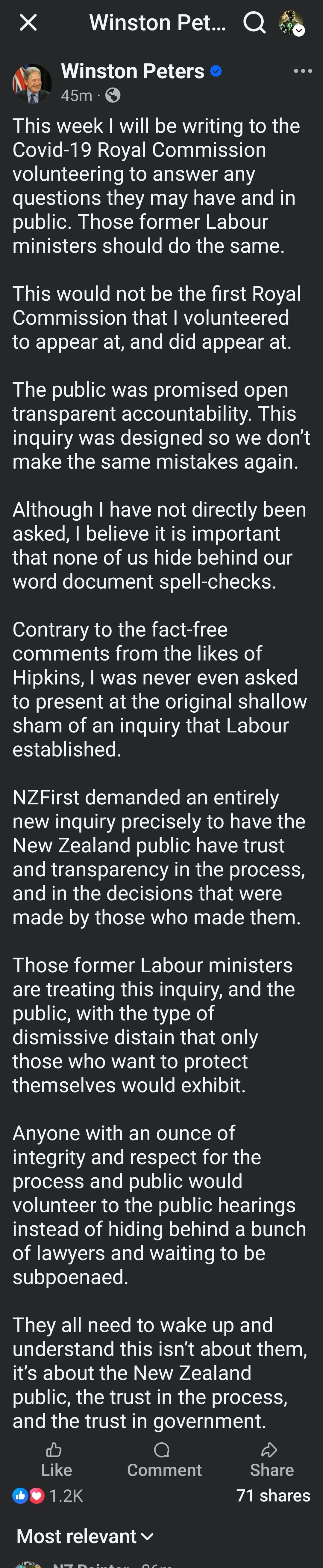 In the world of Winston Peters, every inquiry is either a triumph of his own moral fortitude or a conspiracy designed to protect his political enemies. His latest Facebook tantrum, volunteering to appear before the COVID-19 Royal Commission while simultaneously branding its predecessor a "shallow sham," represents the peak of his decades-long campaign to weaponise institutional processes for his own political theatre.rnz