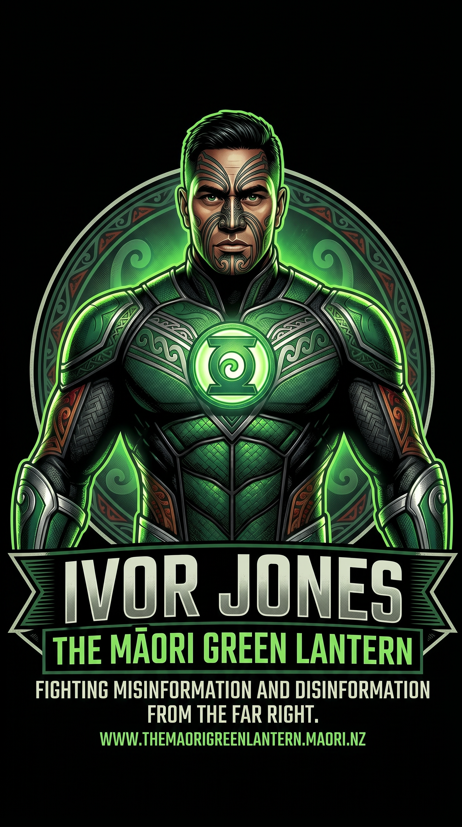 Support the mahi on the Koha platform → app.koha.kiwi/events/the-maori-green-lantern-fighting-misinformation-and-disinformation-ivor-jones