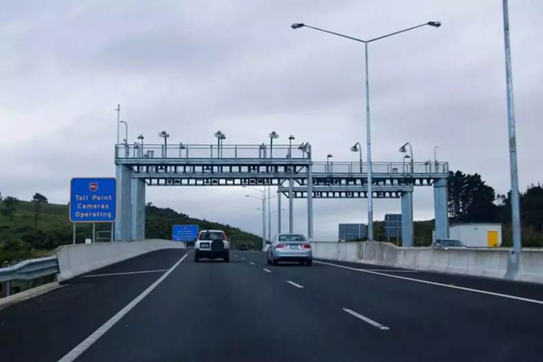 Electronic toll point cameras operating on a New Zealand highway to capture toll payments.