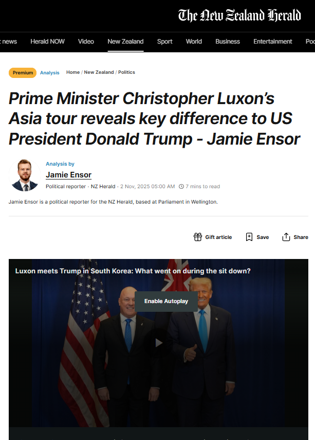 The smoking gun arrived gift-wrapped in a New Zealand Herald puff piece. While (Ensor, 2025) Jamie Ensor’s November 2025 analysis painted Christopher Luxon as some kind of “anti-Trump” on trade, the evidence screams a different truth: these two men are ideological twins separated only by the size of their empires and the sophistication of their PR machines. Both peddle the same exhausted neoliberal playbook—one that benefits property speculators and corporate raiders while grinding working people, and especially Māori, into economic dust.