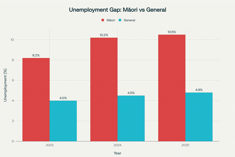 Māori unemployment has risen 28% under the Luxon government while the wage gap has doubled from 4.2% to 5.7% - representing 7,000 additional Māori people without work.