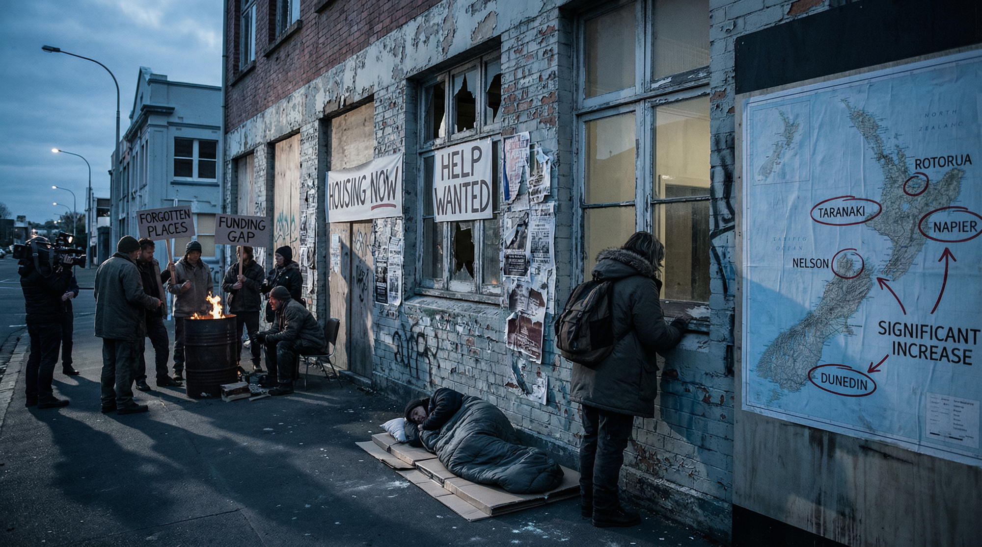 The Salvation Army’s National Homelessness Data Project, released in December 2025, found that 14 of 21 agencies surveyed reported increases in homelessness. Seven reported no change. Not one reported a reduction, according to RNZ. The report explicitly warns: smaller centres like Napier, Taranaki, Nelson, Rotorua, and Dunedin have been “overlooked” by government funding, yet are experiencing the steepest homelessness increases.