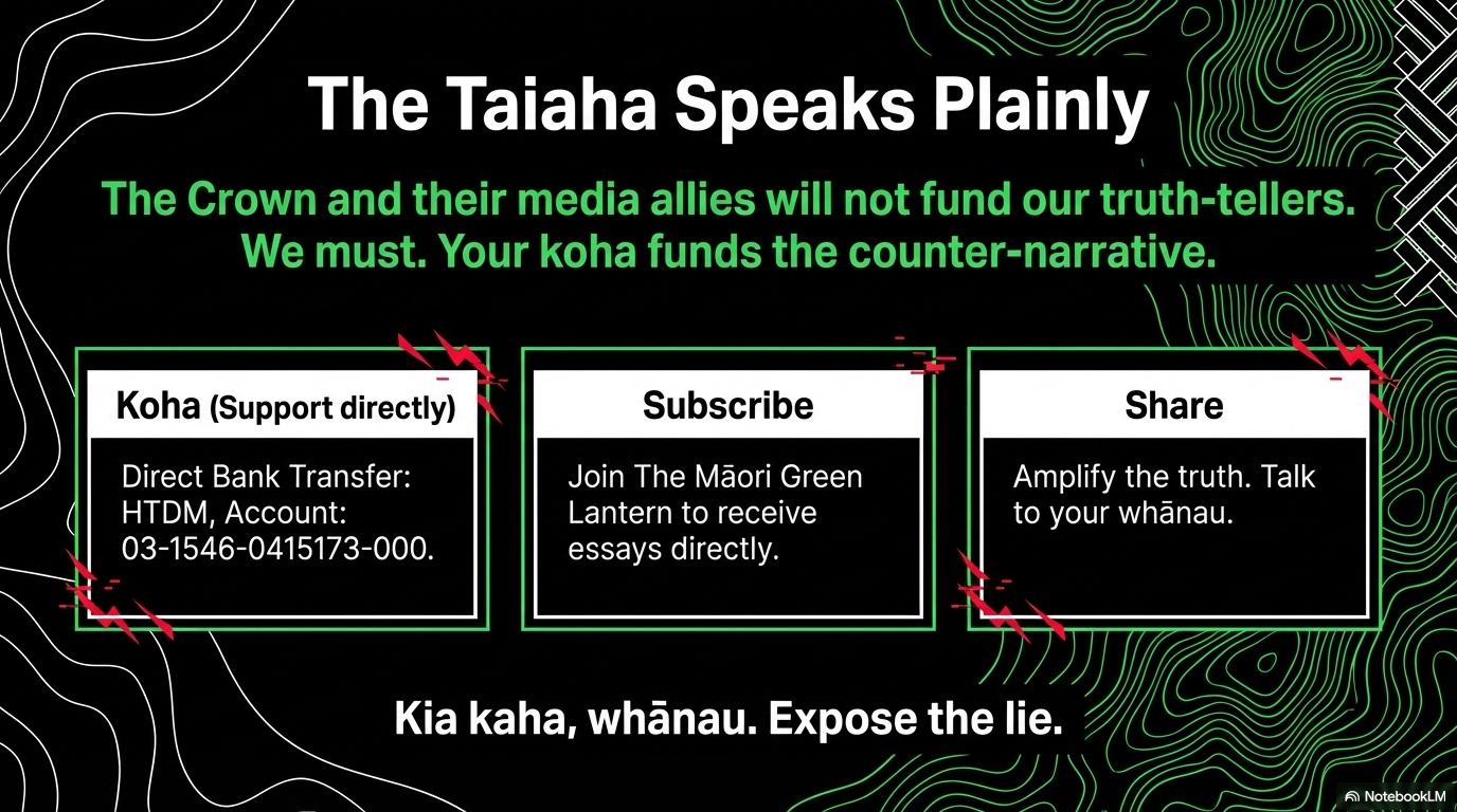 Every koha signals that whānau are ready to fund our own truth-tellers — because the Crown, the corporations, and their media allies never will.