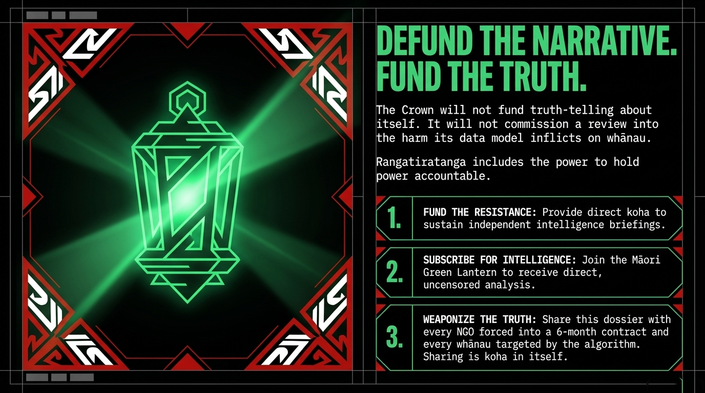 The Crown will not fund truth-telling about itself. The SIA will not commission a review into the harm its data model inflicts on whānau. It will not tell you that your health records sit on Microsoft Azure servers in Australia. It will not tell you that the four staff members who had the courage to make formal complaints against their DCE received no published findings. It will not return the $120 million stripped from the providers serving our most vulnerable tamariki.