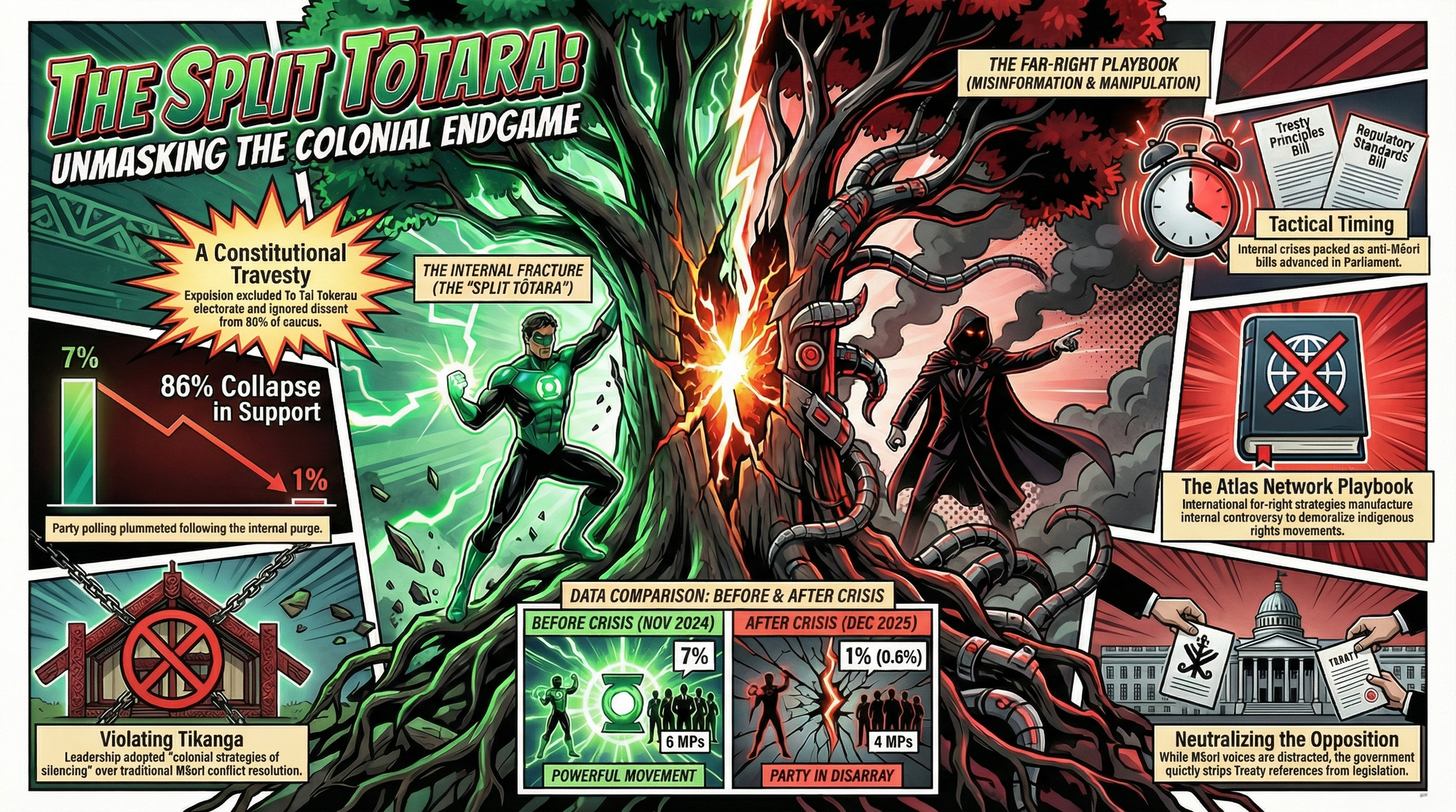 "The Split Tōtara and the Arsonists Who Lit the Match: How Te Pāti Māori's Purge Serves the Crown's Colonial Endgame" - 14 February 2026