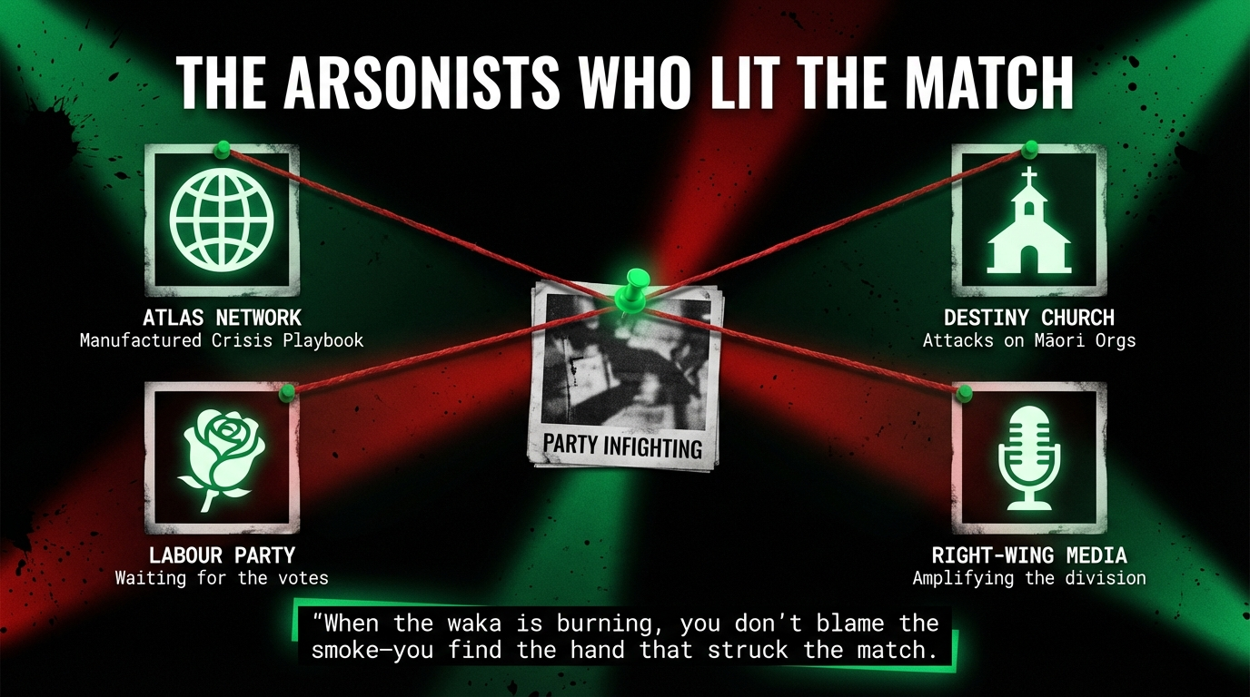 This is the same playbook that destroyed Australia's Indigenous Voice referendum. The Atlas Network—with its $20.2 million USD budget funding operations in over 100 countries—specialises in manufacturing controversies that divide indigenous rights movements. Their New Zealand affiliates, the Taxpayers' Union and New Zealand Initiative, provide the intellectual cover for the coalition's anti-Māori agenda while manufactured internal crises keep the opposition distracted and demoralised.
