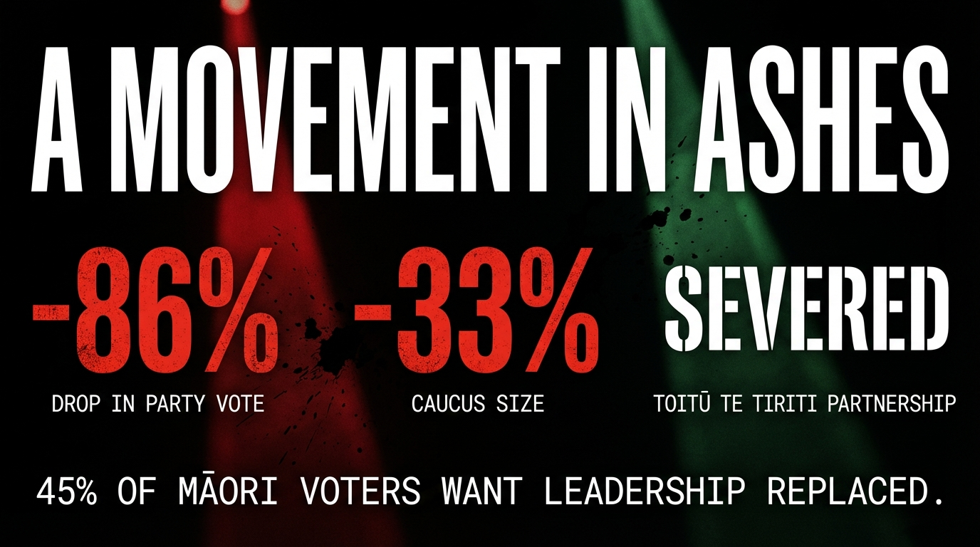 | Māori voter confidence in co-leaders | Not measured | 45% say replace | Crisis |