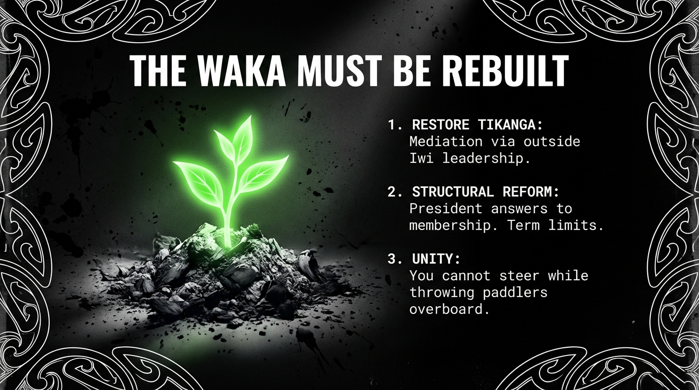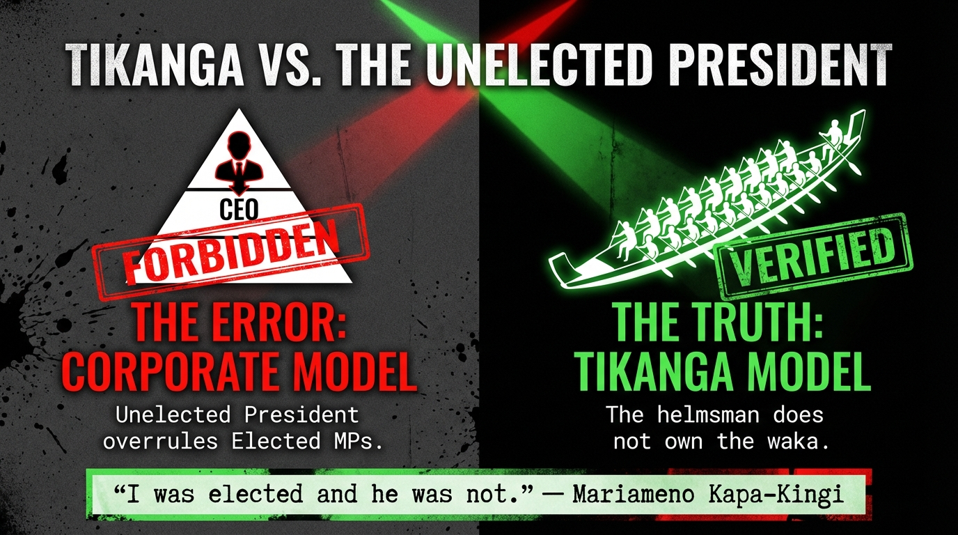 Tikanga impact: Mana is not appointed. Mana is earned through service, demonstrated through action, and upheld through accountability to the community. When an unelected president overrides the mandate of elected representatives, it inverts the tikanga principle that power flows from the people upward, not from the executive downward. This is the very "dictatorship model" that Eru Kapa-Kingi described—and that former MP Te Ururoa Flavell validated when he said the process was "questionable" and represented "a bit of an indictment."