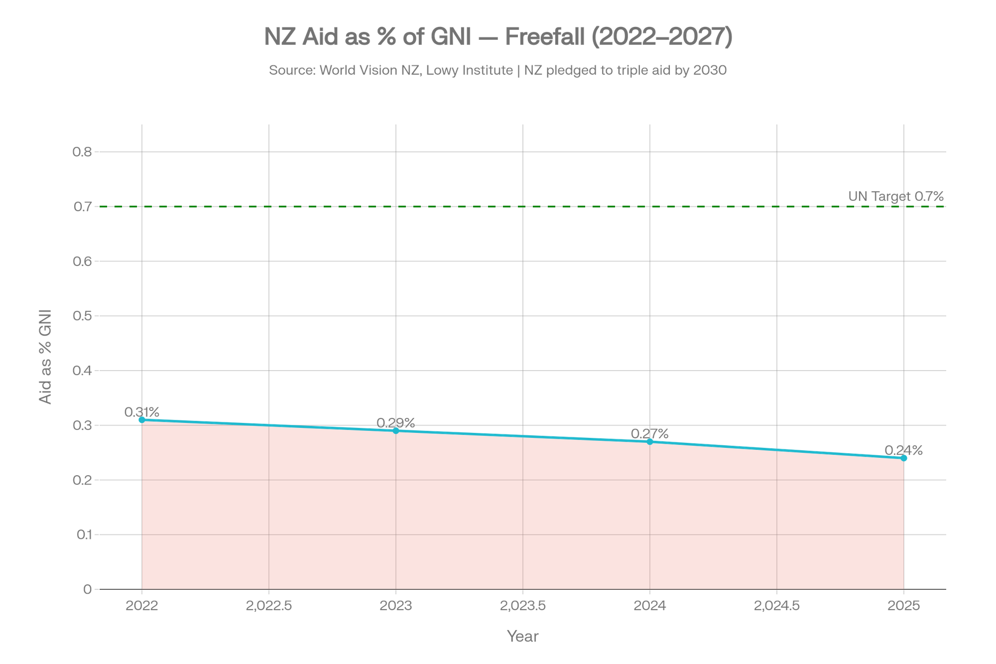 Research conducted Sunday, March 22, 2026. Tools used: search_web, fetch_url. Primary sources consulted: RNZ, 1News, World Vision NZ, Caritas Aotearoa, Lowy Institute, Labour Party releases, National Party press releases, PMN, Te Ara. The NZ Herald article was paywalled; all claims independently verified through corroborating sources. All statistics sourced from primary journalism and NGO documentation. Charts generated from verified data points.