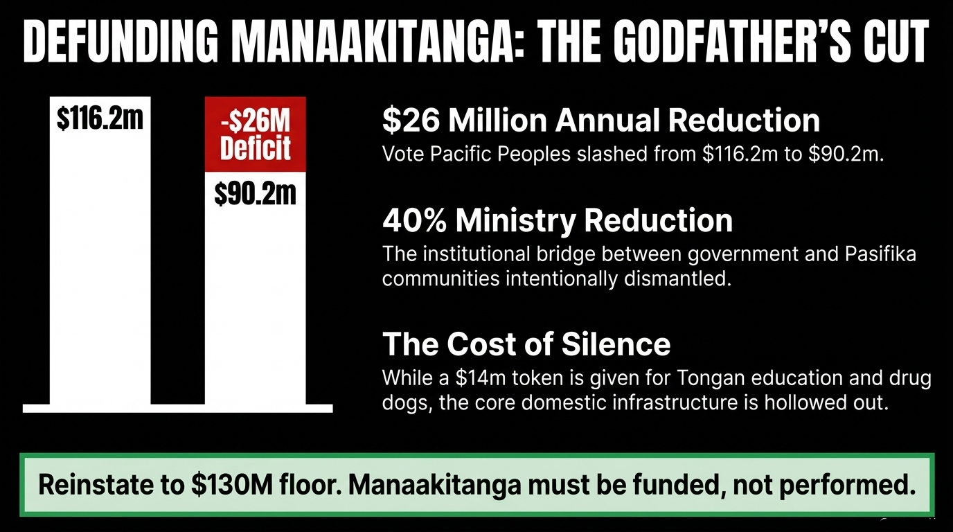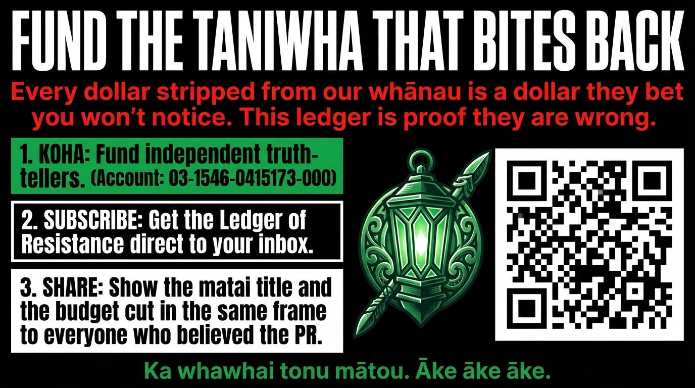 Show them the numbers. Show them the matai title and the budget cut in the same frame. That is koha. That is manaaki. That is the act of truth-telling that this government counts on us not to do.