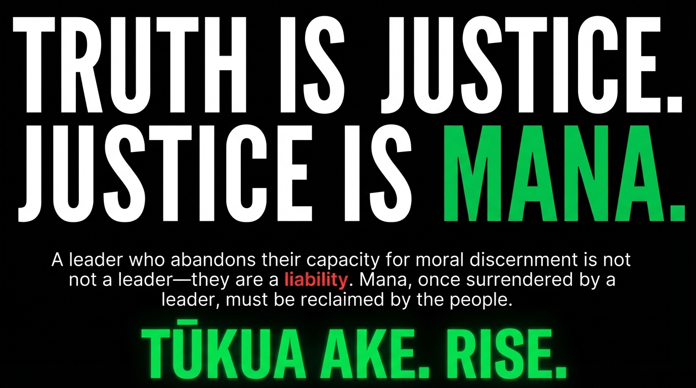 That rangatira would be removed. Their mana would be haere noa atu. Gone. In tikanga Māori, a leader who abandons their capacity for moral discernment is not a leader — they are a liability to every person in their care.