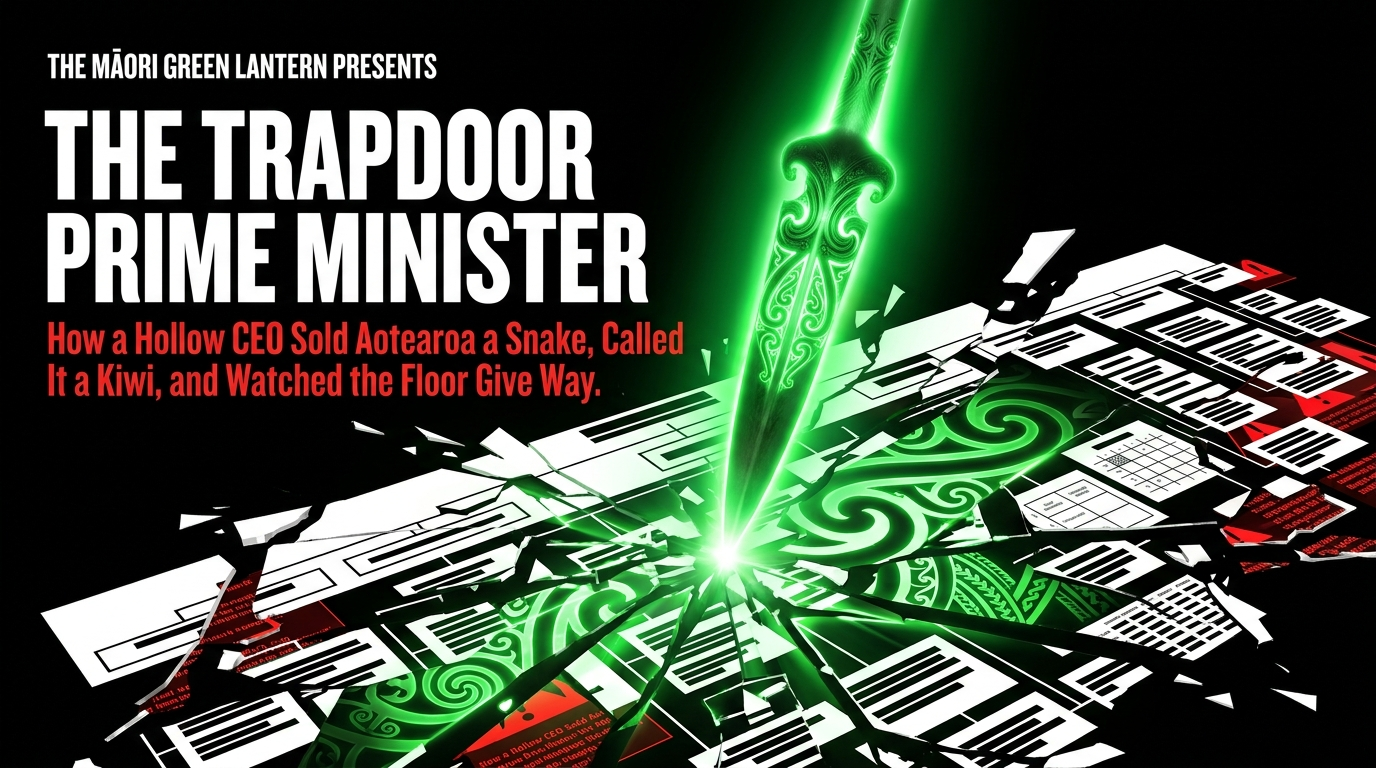 "THE TRAPDOOR PRIME MINISTER: How a Hollow CEO Sold Aotearoa a Snake, Called It a Kiwi, and Watched the Floor Give Way Beneath Him" - 18 April 2026