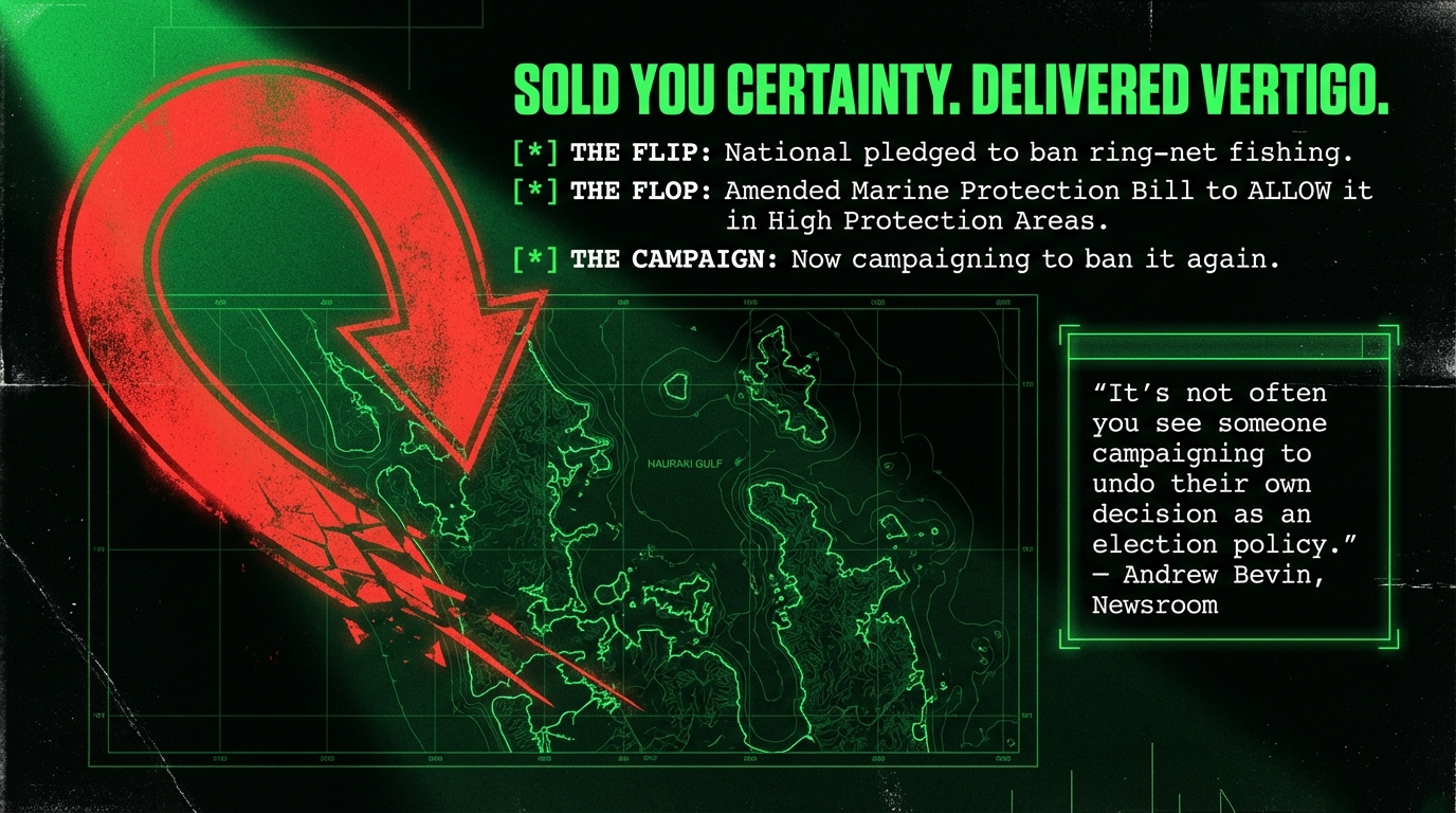 The Hauraki Gulf net-fishing backflip is not an anomaly. It is the template. It is the perfect, crystallised specimen of a government that governs by opinion poll, legislates by donor instruction, and retreats by press release — then has the breathtaking gall to call the retreat a "bold new direction."