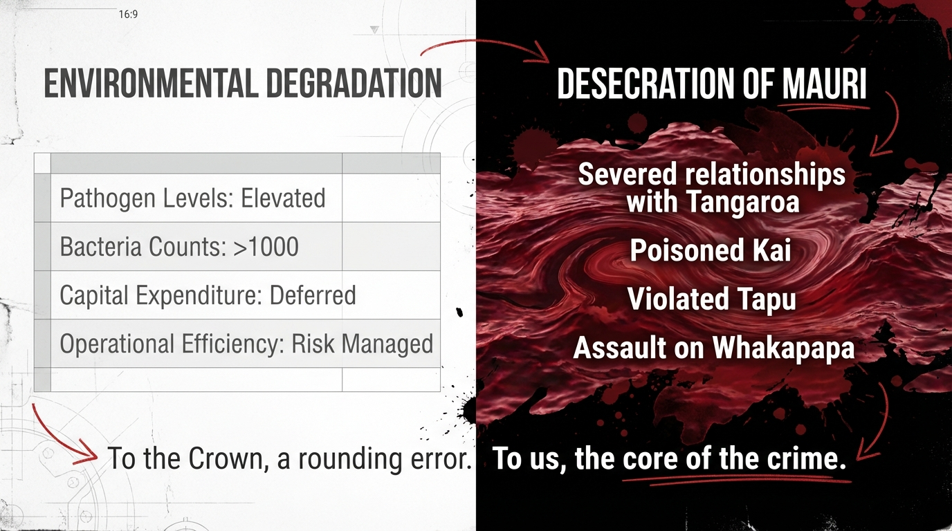 Under tikanga, what they euphemise as “environmental degradation” is an active desecration of mauri and tapu. To the Western colonial mind, that is a cultural footnote. To us, it is the core of the crime.