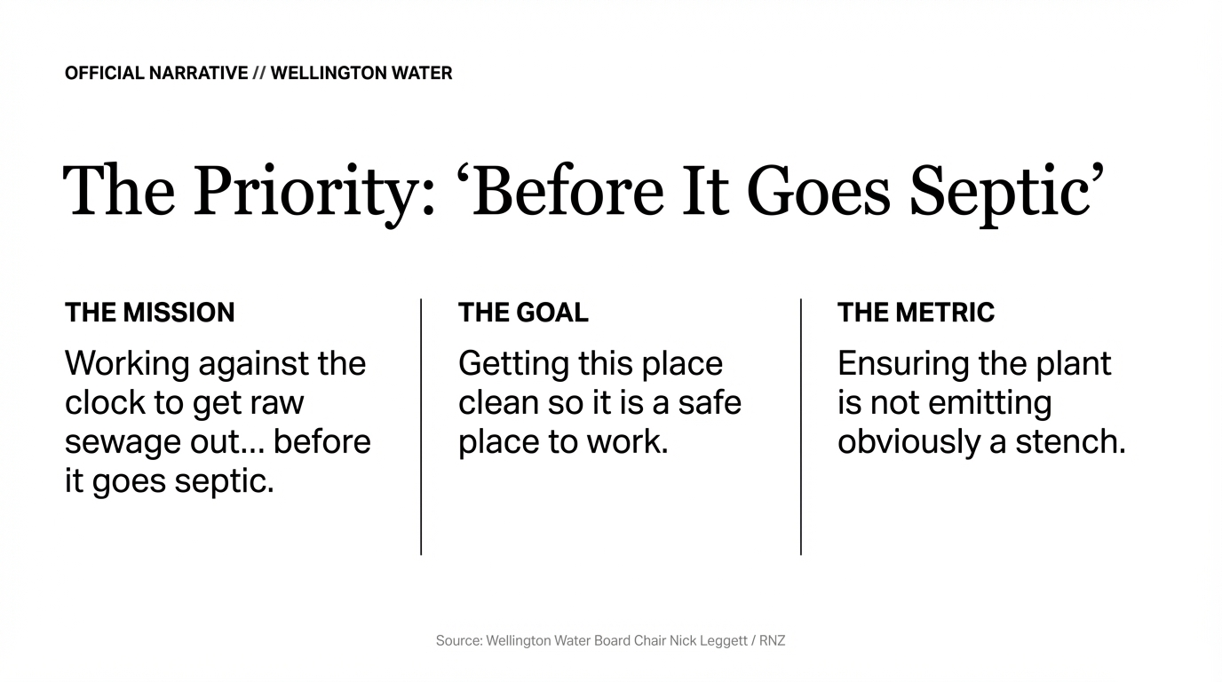 - “Not emitting obviously a stench” = the real priority is PR, not mauri, not health, not justice.