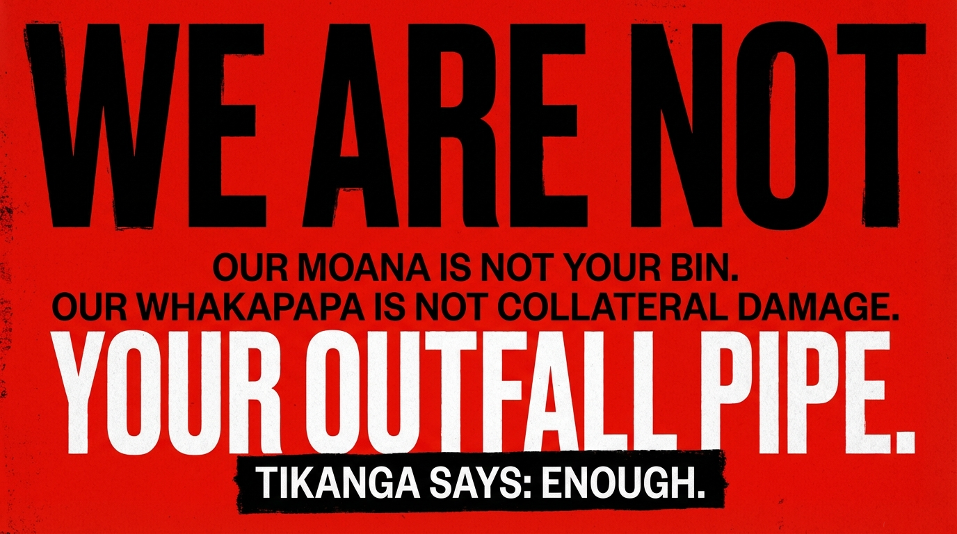 Tikanga says: enough. We are not your outfall pipe. Our moana is not your bin. Our whakapapa is not your collateral damage.