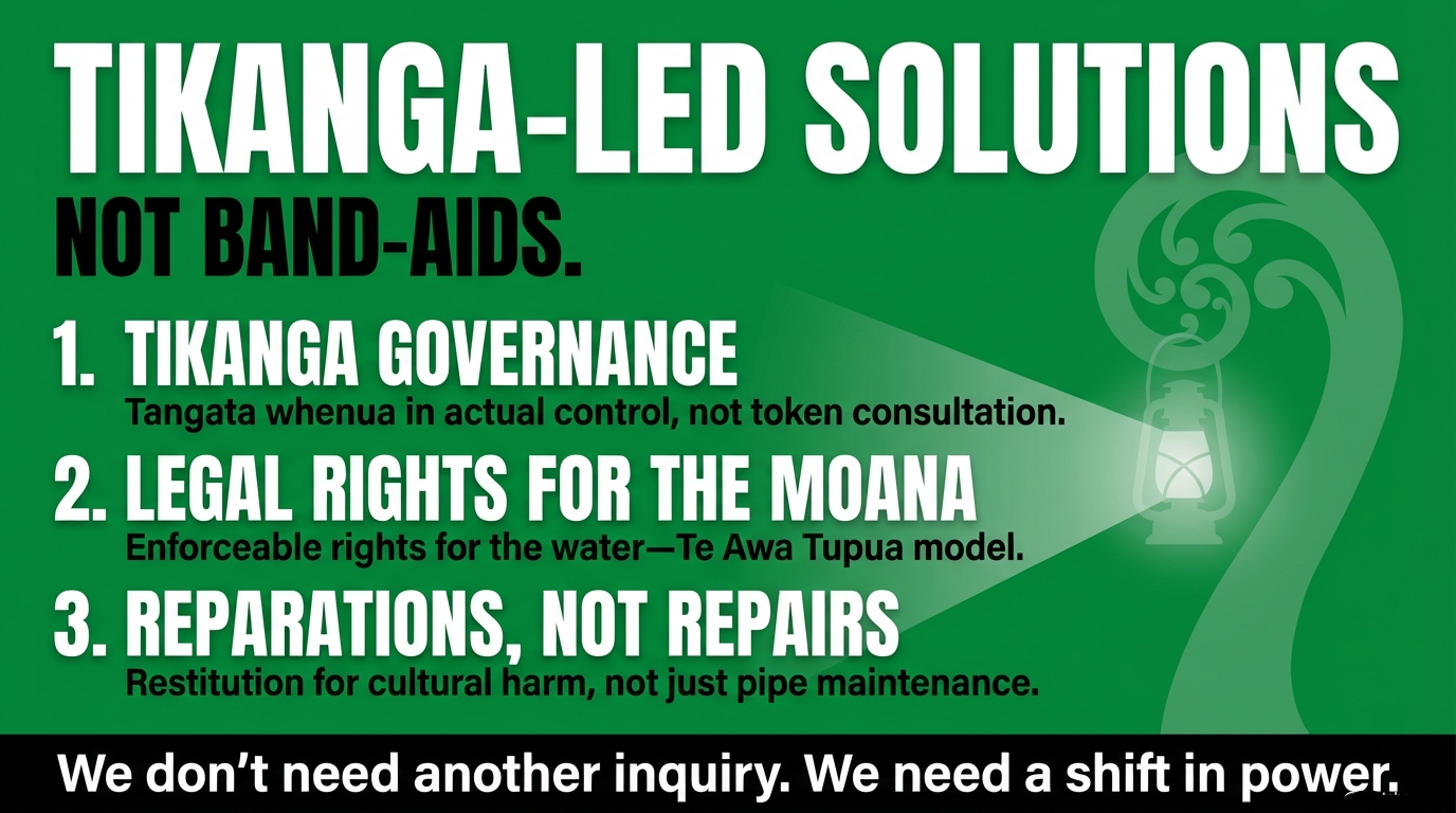 Rangatiratanga means we do not wait for inquiries written by those standing knee-deep in the mess. We pool our own resources to hold them to account, to protect mauri, and to tell the truth they work so hard to deodorise.